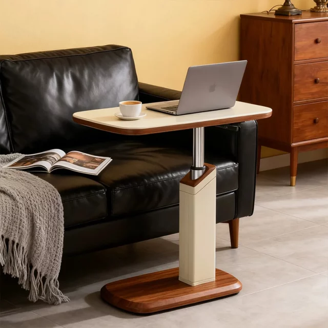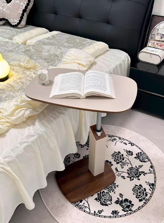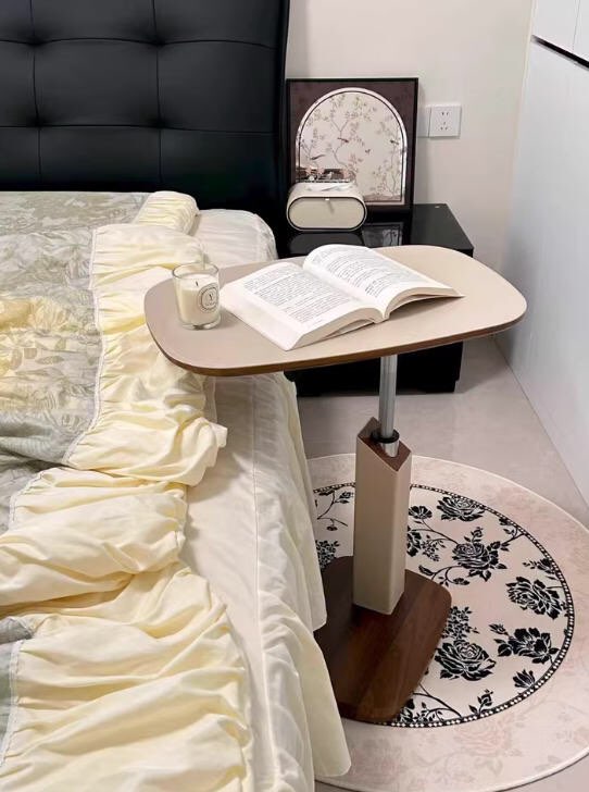 I never expected to be able to get such a high-quality side table at such a low price? The saddle leather tabletop is smooth and has a good texture? The edges and corners are all well-made, without any burrs or such things. The frame also has an adjustable feature, allowing you to adjust it to be either tall or short. It's very convenient to use? The table is very lightweight and looks nice when placed in the bedroom or living room? This style also goes well with my bedroom~