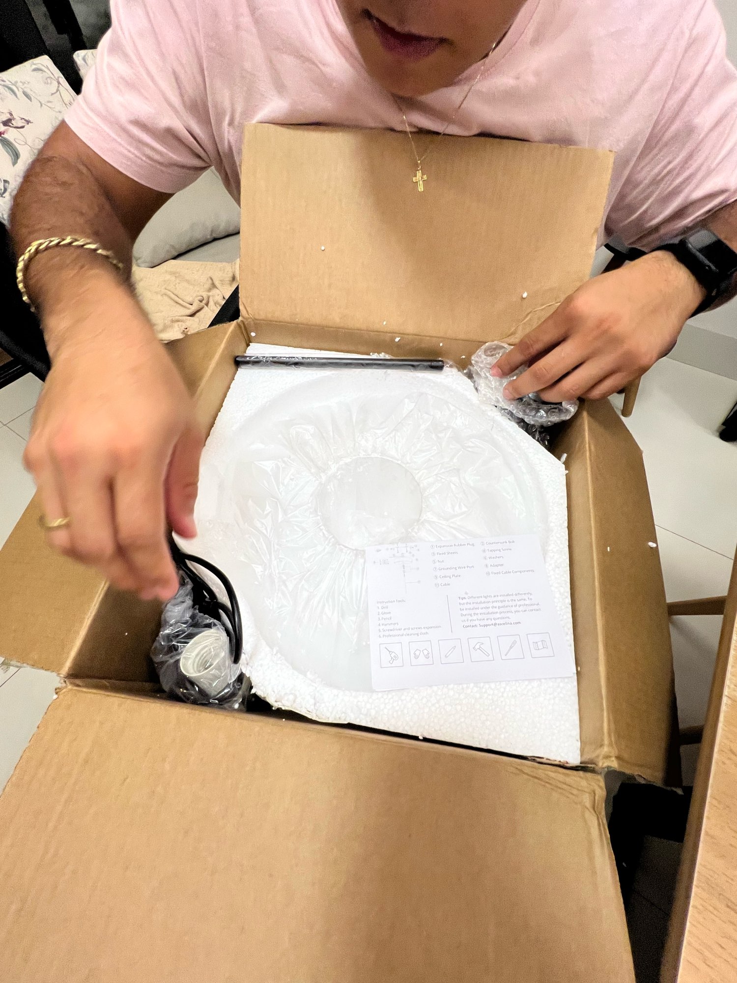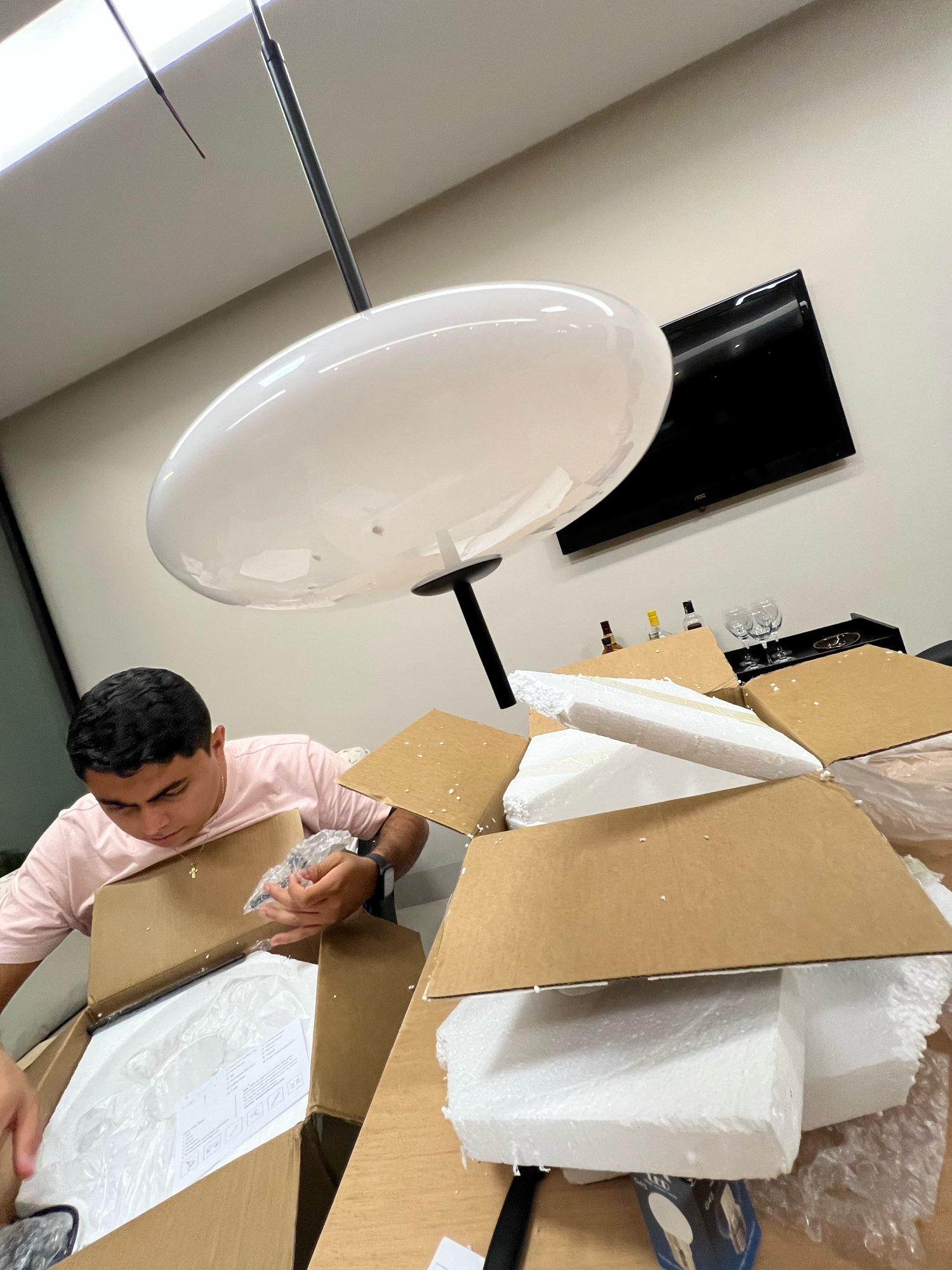 Wonderful! Excellence in shipping! Completely secure packaging! It's important to note that the white part is made of glass. I suggest including a QR Code directing to an assembly video. Buy without fear. I received it here in Brazil in just a few days. This lamp is being sold in Brazilian stores for approximately R$2,000.00 (two thousand reais). It was truly a great opportunity! An excellent shopping experience! Today I feel like I finally have a home! Made all the difference! With my identity! Good sales! I look forward to news! I also appreciate the message written on the foam board! ♥️