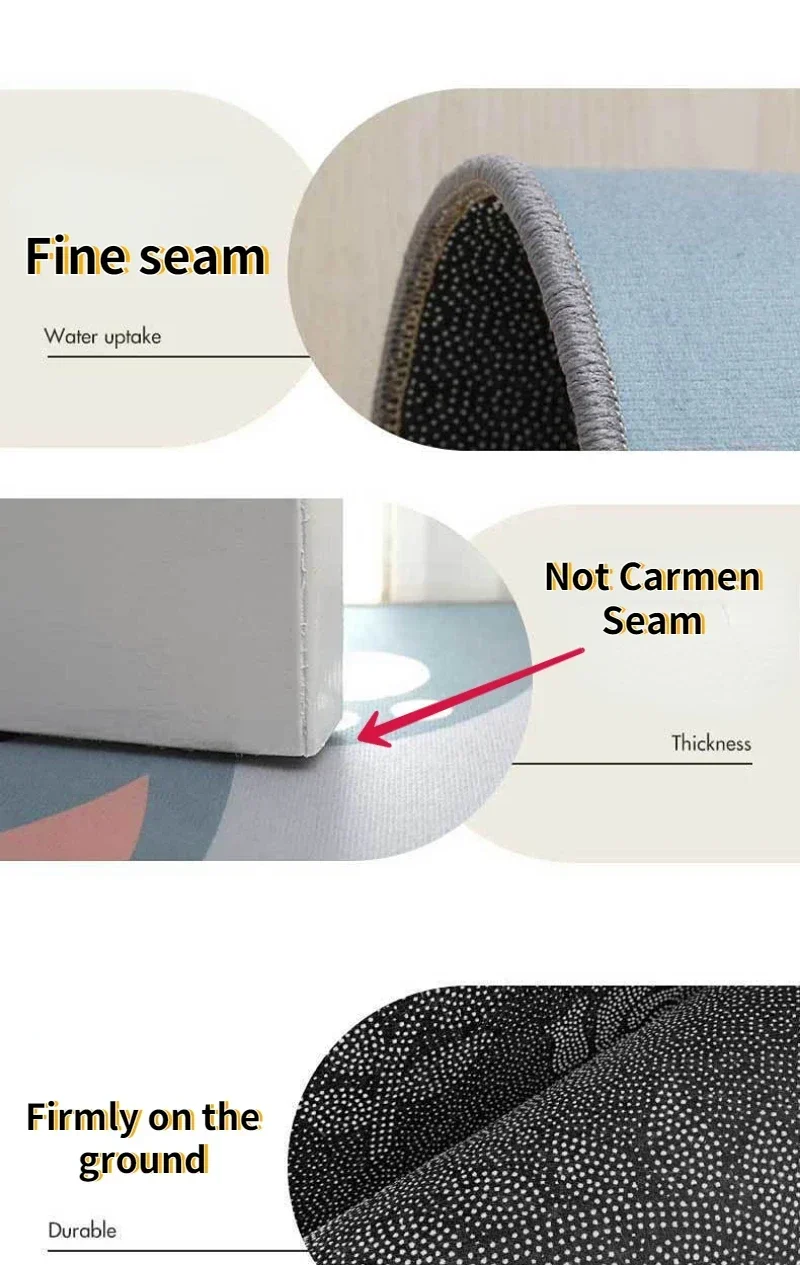 Soft and beautiful carpet, affordable price. I have pets at home. So washable carpets are meaningful to me. Thin, without fuzz, but as soft as velvet on the feet. There is no odor when unpacking. It's very suitable to place it in the aisle. I will make another purchase.
