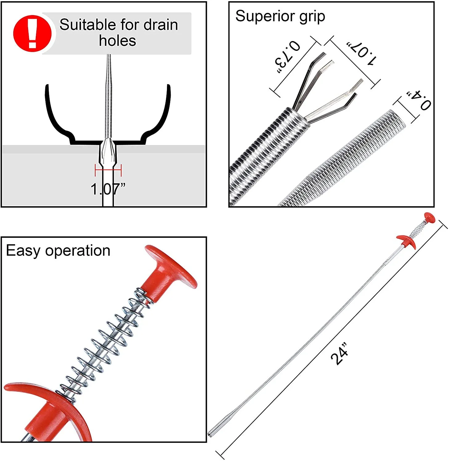 Good quality, arrived complete. But the end does not fit through the holes of my sink or bathtub. It is shown in image 4, and when removing the tub drain, it gives me the impression that it won't reach the drain pipe. Consider the space where you want to introduce the item.