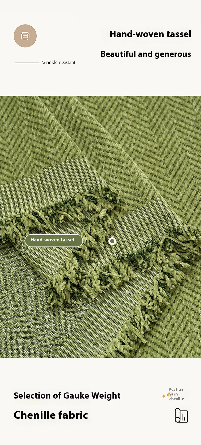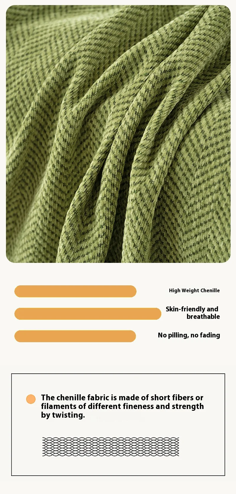 * High-quality Materials: Crafted from premium high-density chenille fabric with a soft, breathable, and durable texture. The intricate herringbone jacquard design enhances the cover’s elegance, while its fade-resistant and machine-washable properties ensure long-lasting quality and easy maintenance.