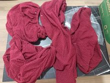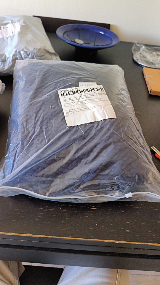 Arrived packaged with sarah's orders, looks fine, added a review later I got the size wrong, but it's my fault. The fabric looks fine, but it does its job.