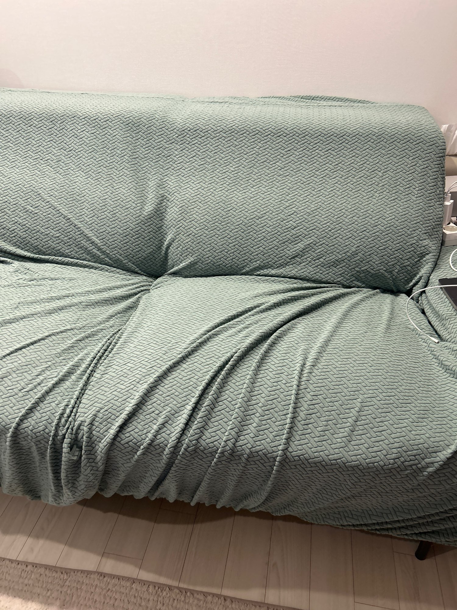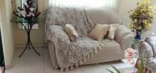Beautiful and comfortable sofa cover, often enough, elastic and very soft, just right size for 3 seats. Arrived early.