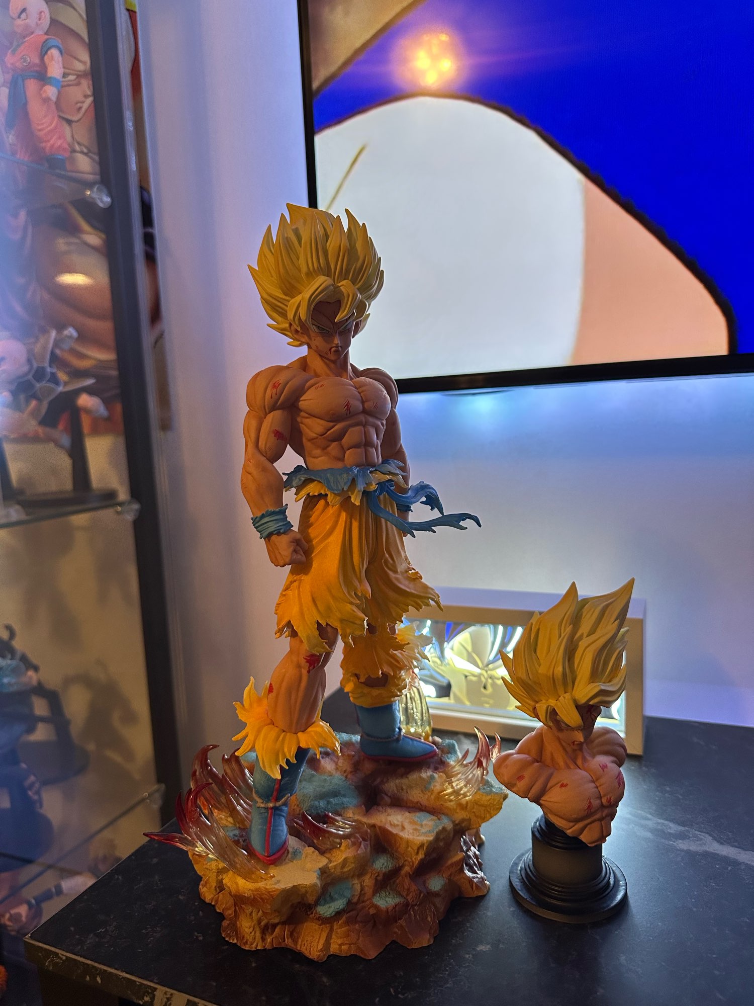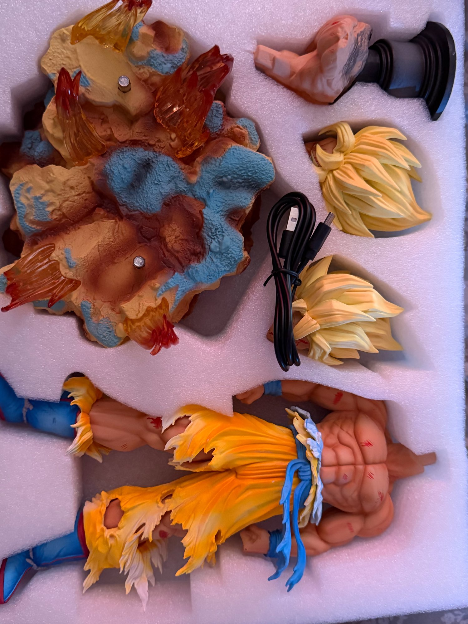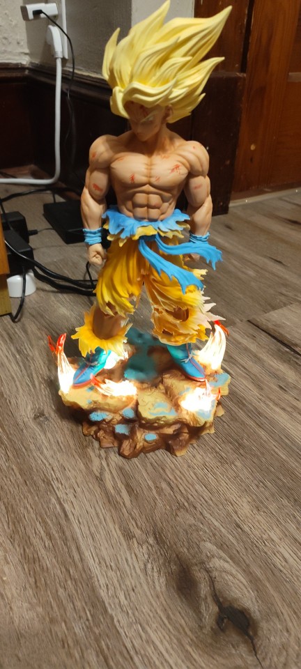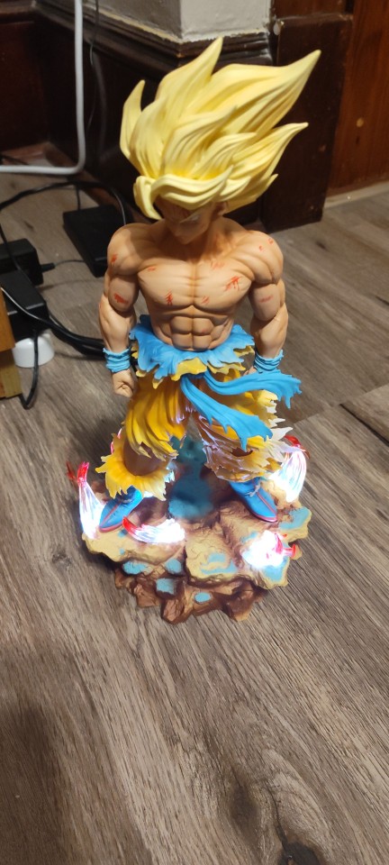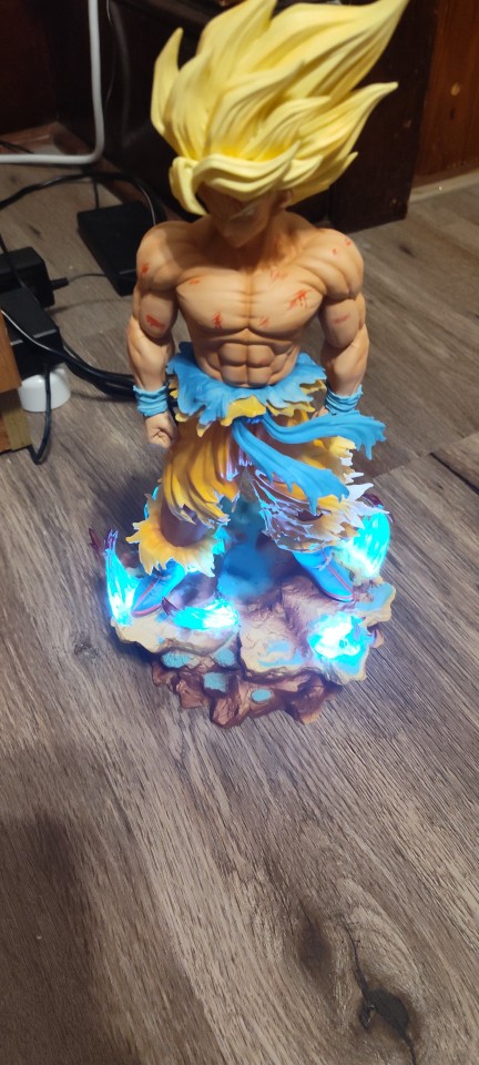 Wow wow and another wow, wonderful statue, chilling details. Perfect packaging, arrived spotless, as others say it takes a bit of force to put it in but of course, otherwise it would wobble; just a light force is needed and it fits perfectly. However, I'm a bit disappointed with the color; it would have been perfect if it was just solid yellow (not all colors) and that it dimmed as it does. Another small flaw is the original box, which would have been amazing since I collect figures, but the quality of the product makes all these minor negative aspects seem minor. 😅 , FANTASTIC. I recommend it 100%. 👍🏻 💪🏻