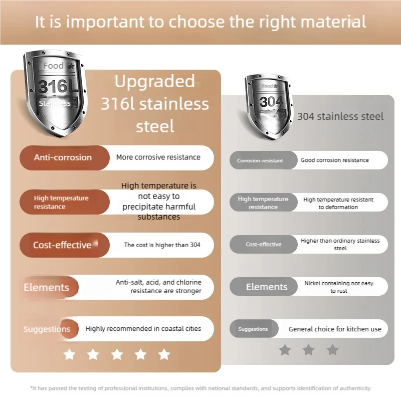 It is made of 316 stainless steel, which is really rare. It has a wonderful texture and a really good quality-to-price ratio.