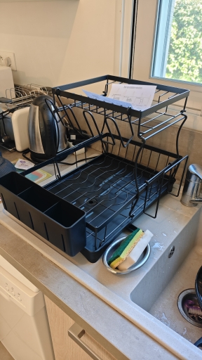 Really practical, I love it!!! It's easy to assemble, sturdy, you can put lots of dishes on it, and there's no standing water, so it's very hygienic.