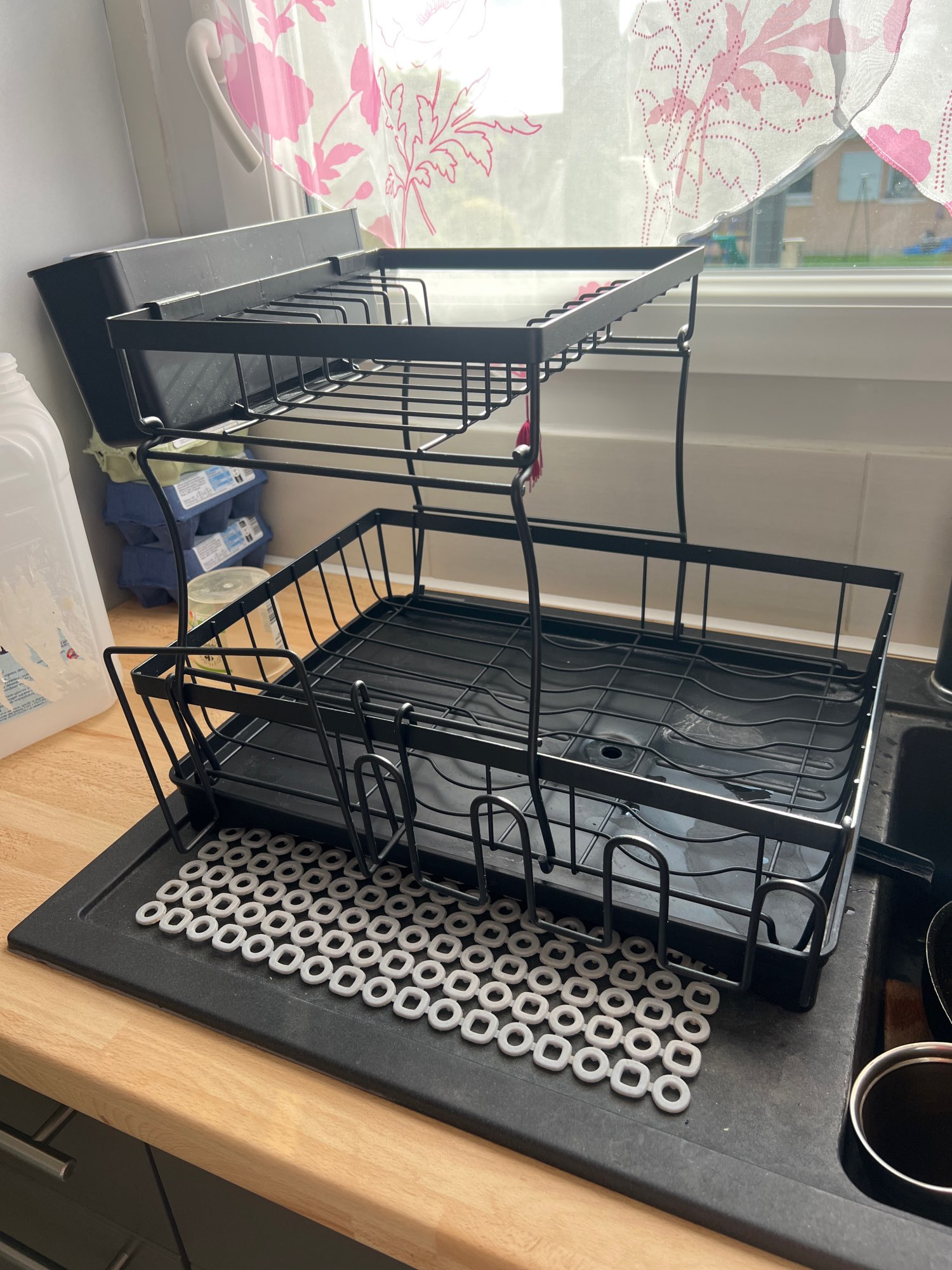 We liked the material. Despite being thin, the structure is quite resistant and has good finishes. We solved 3 problems we had, now we have more space to dry, we can place the dishes with a rim on the second floor and no longer need the rubber mat to drain the water.