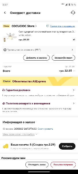 Very fast delivery. I can't understand how I lived without such a wonderful fan before! Turned it into a night light, it's amazing! There is a remote control with 3 fan speed settings. Fan timer, cold warm light, on, off. Many thanks to the seller!! !