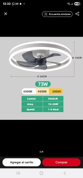 Great, it arrived ahead of time. It's just like the image. Due to its shape, it comes already assembled, so it's practically just connecting the cables and putting it on the ceiling. So far it works very well, has good lighting, can be adjusted well, moves air effectively, and also has an elegant design.
