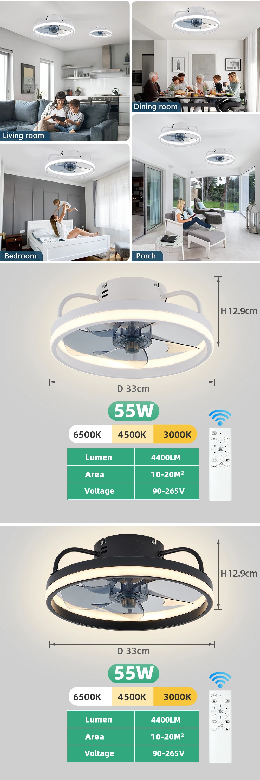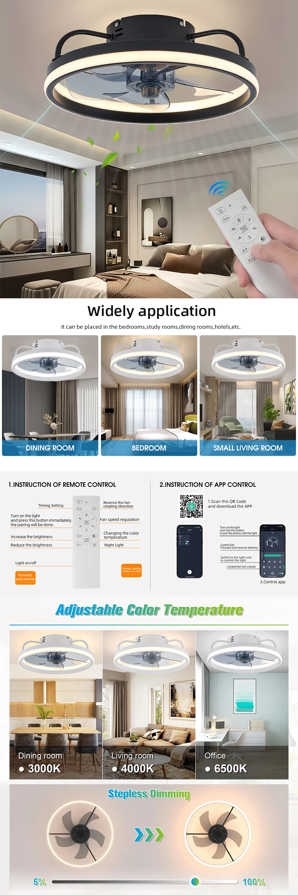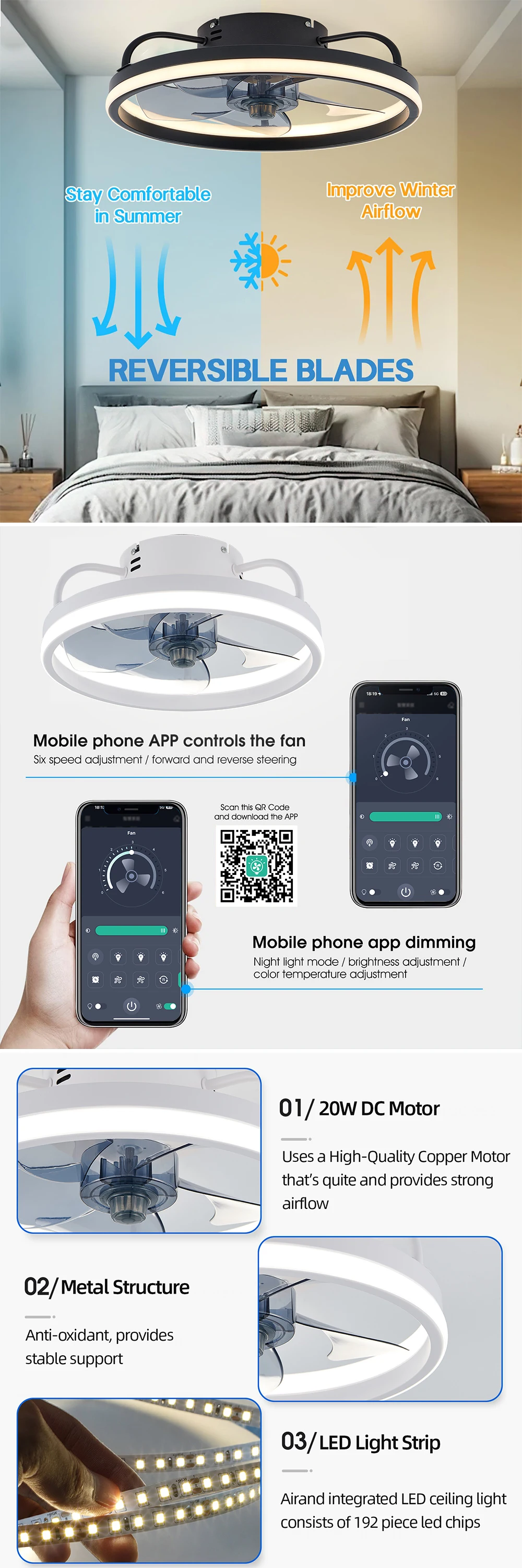 LED Lamp Fan Smart Silent Ceiling Fans For Bedroom Living Room Décor