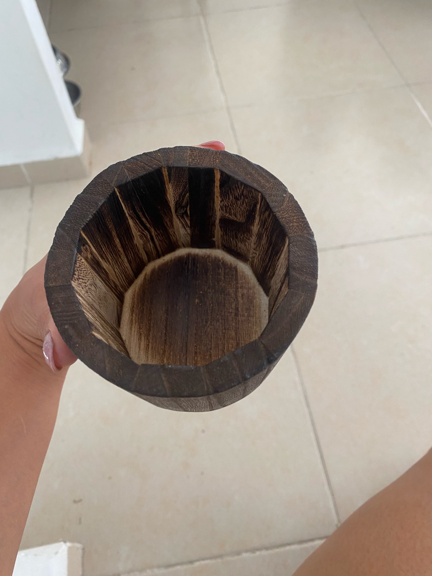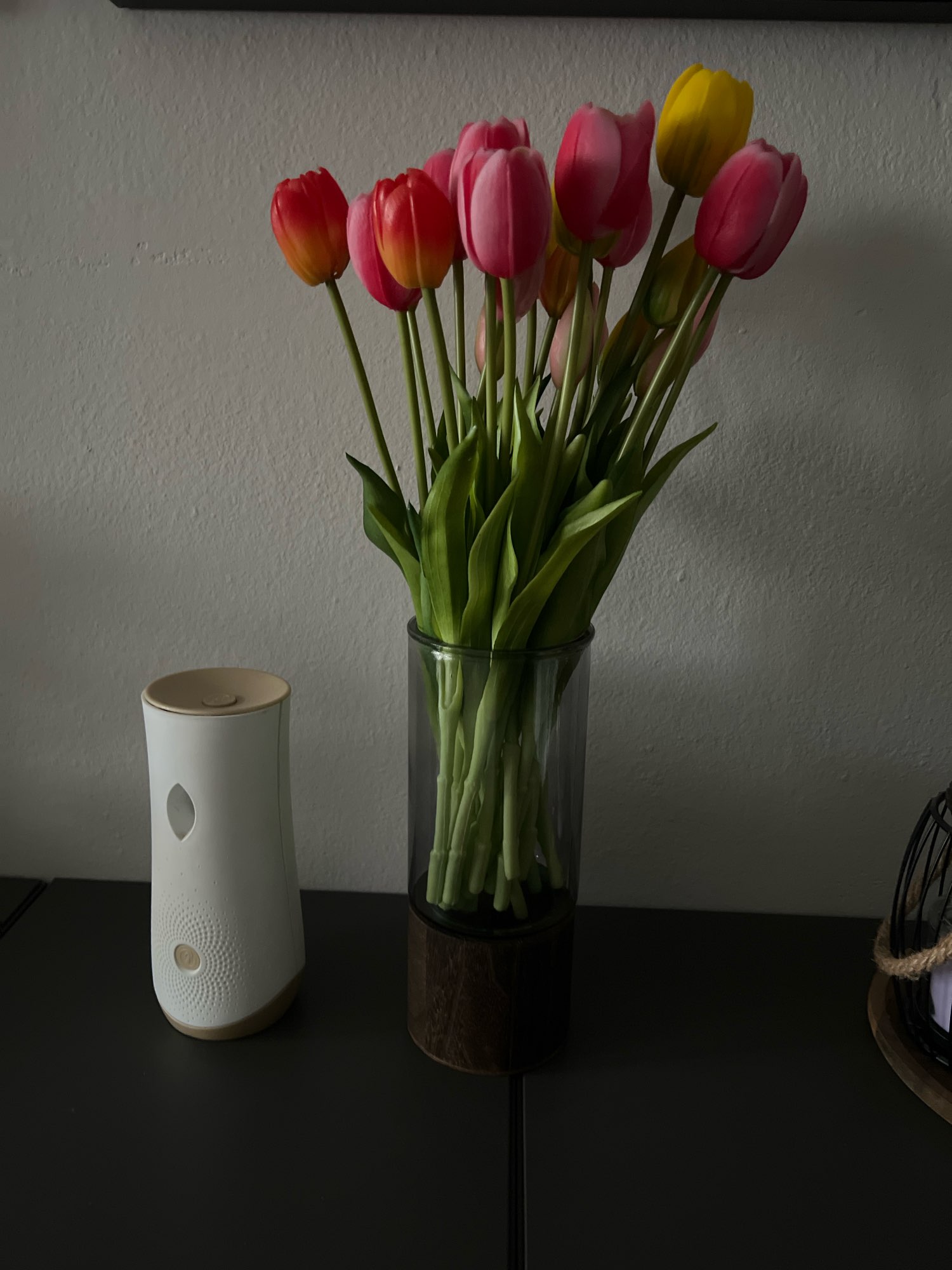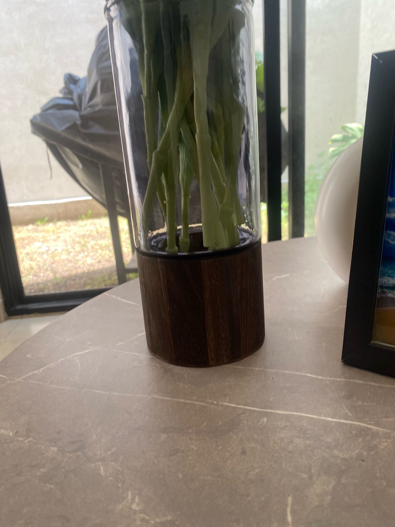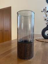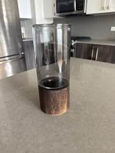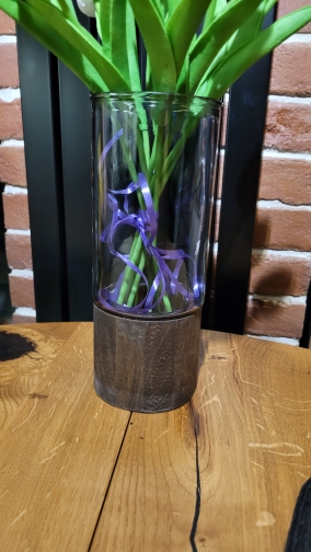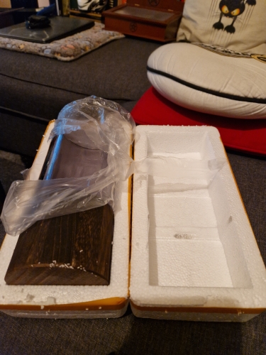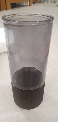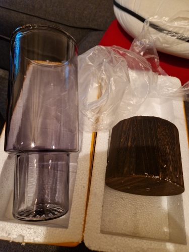 It arrived quickly and perfectly protected! very good quality! Wood base and thick dark glass tube.