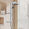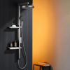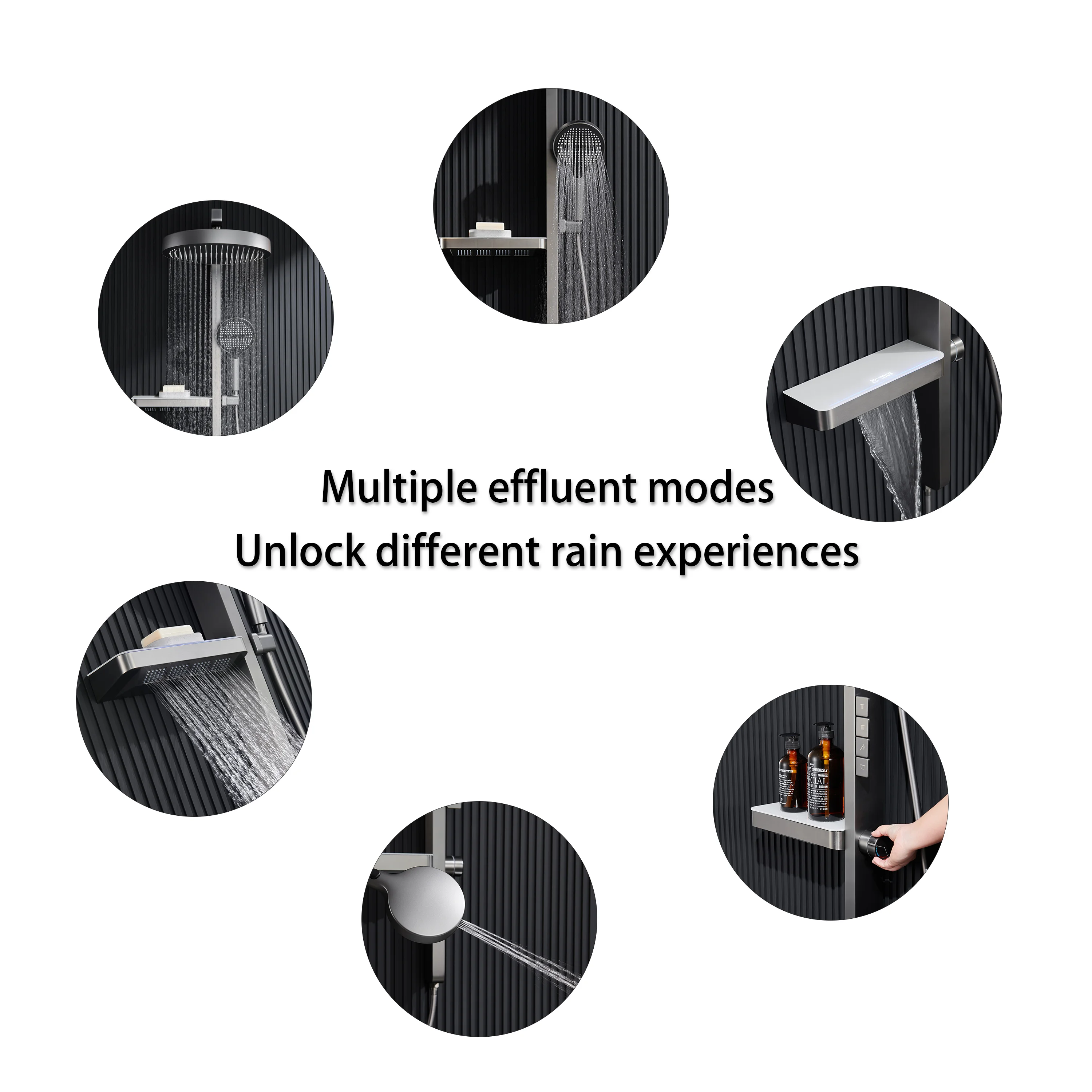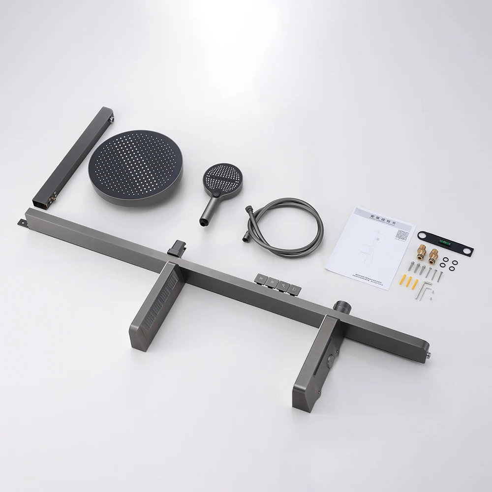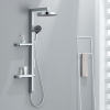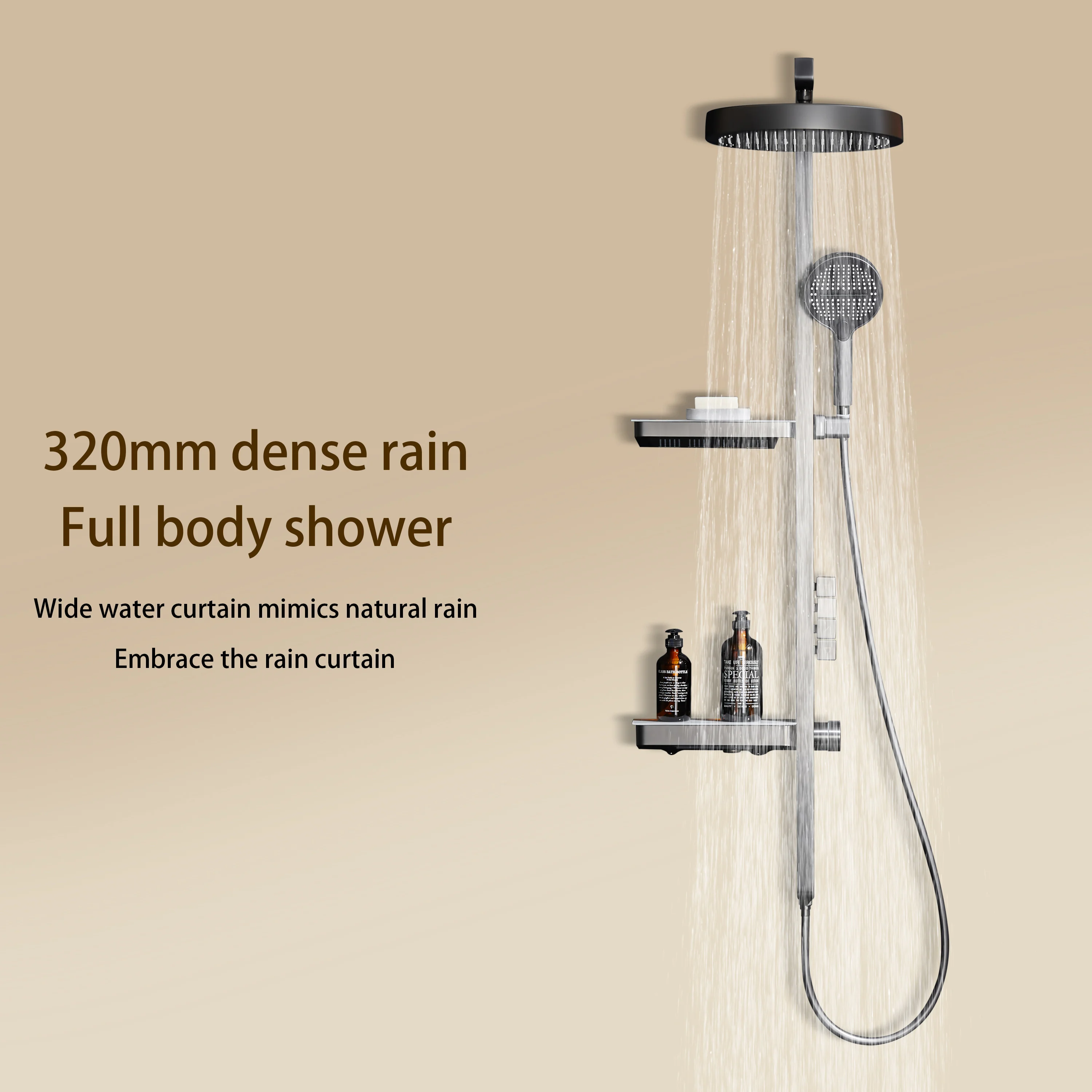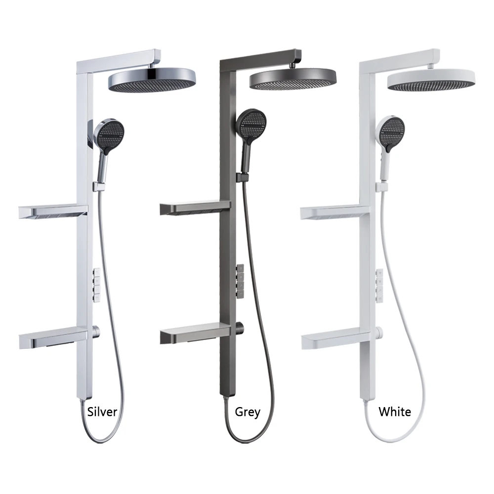 Great Shower System Arrived a week earlier than scheduled by SDEK. Looks exactly the same as in the description. Top shower, showerhead, and lower shelf cover are plastic. The rest is metal. I do not agree with the negative review about low quality.