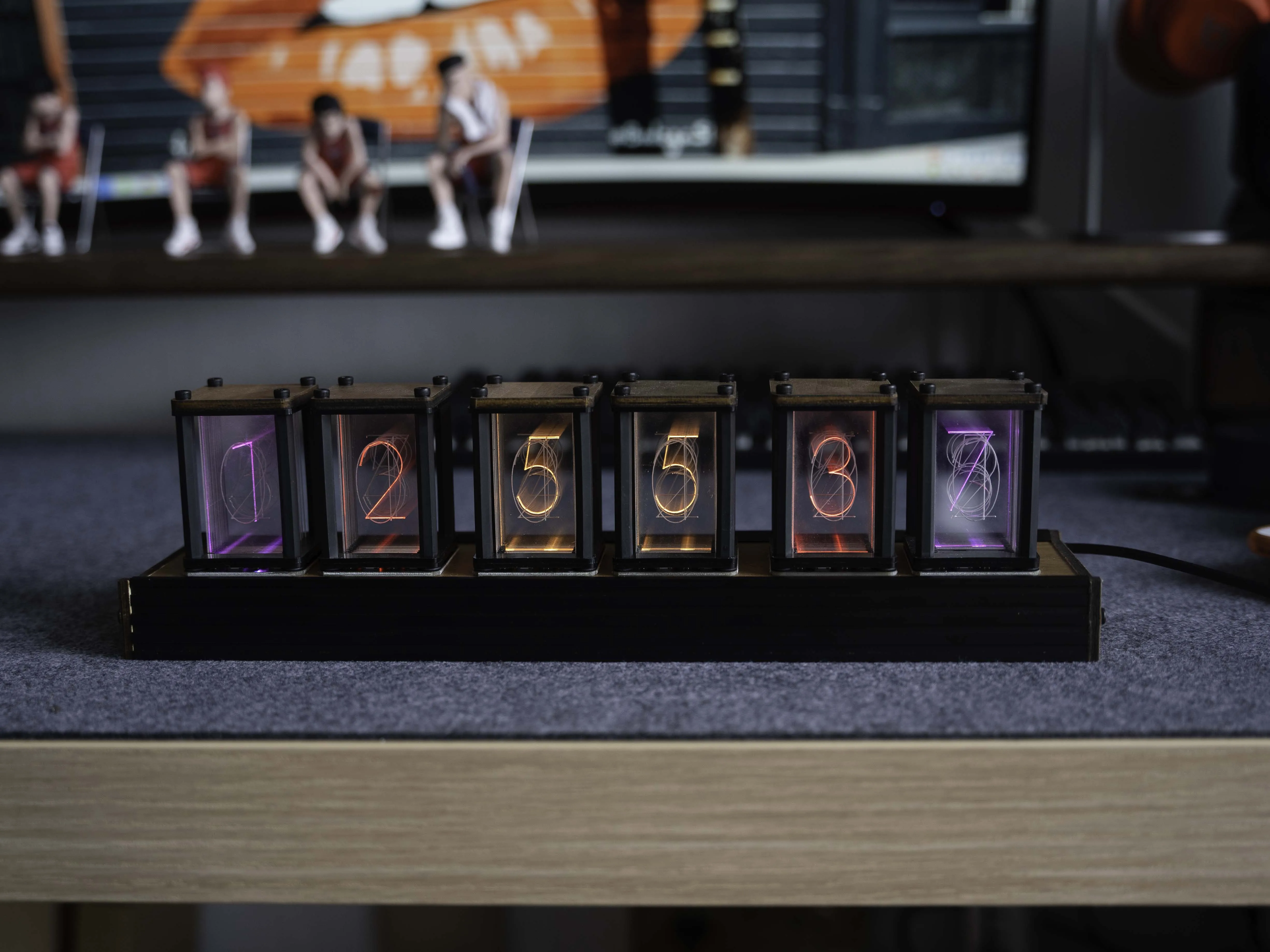 Luxury Nixie Glow Tube Clock Wood DIY Table Clock Creative