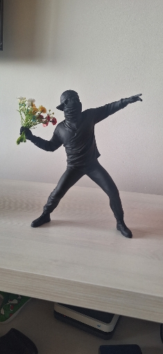 Rage, the Flower Thrower or Love is in the Air is one of the most iconic stencils by Banksy. It shows a masked Palestinian throwing a bouquet of flowers.