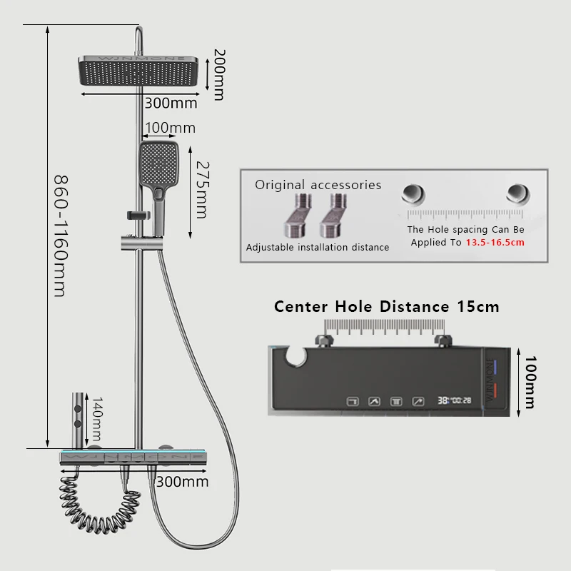 The shipping took a bit, everything arrived well, it's great, good quality, it shows the temperature and the minutes. If you install it at the height of the bathtub faucet, you will need one or two tubes to extend it, depending on the height you want. Recommended shower.