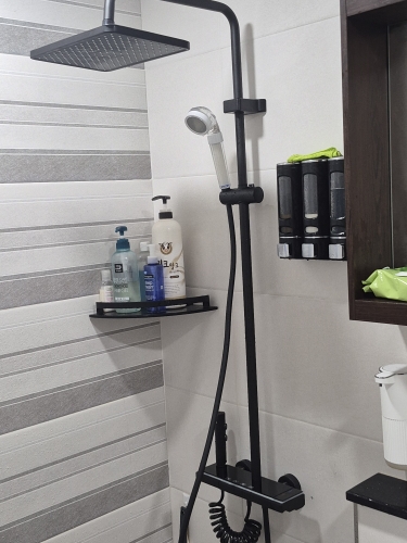 It takes some time to install. Shower stand. The screw thread is left-hand thread. There are two types of right-hand screws. It looks pretty after installation. I don't think anyone can install it.