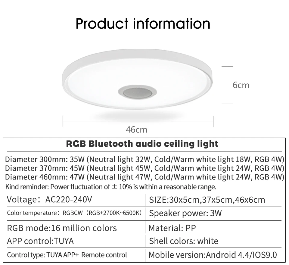 4. Multiple specifications: We offer three diameter specifications of 300mm (32W), 370mm (45W), and 460mm (47W) to meet the lighting needs of different room sizes.