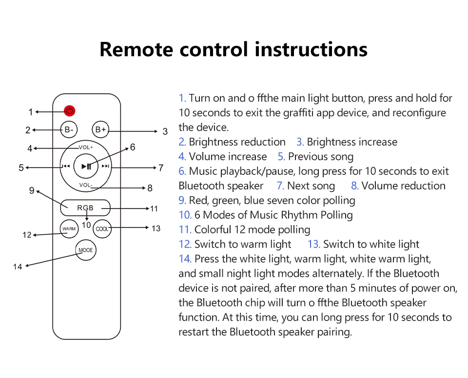 A1.Turn on Bluetooth on your phone, find “RGB Light” in the Bluetooth device list, and click connect. After successful connection, open the mobile music player to play music.