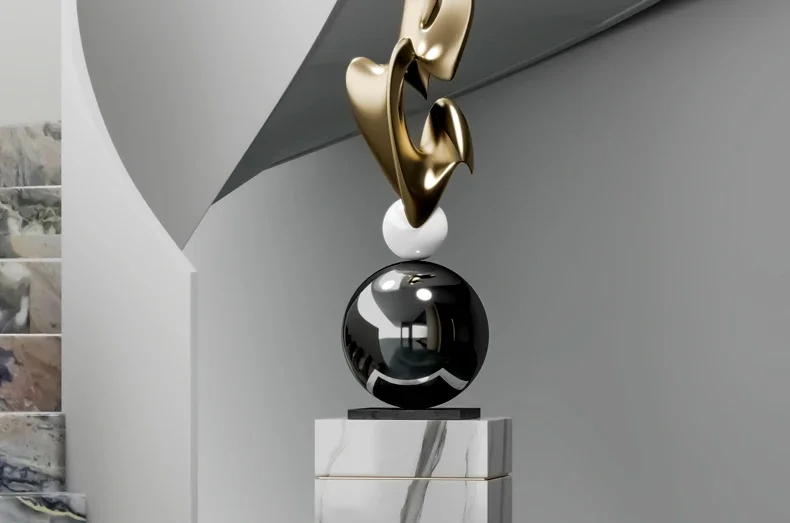 Modern Light Luxury HomeDecor Electroplated Geometric Statue