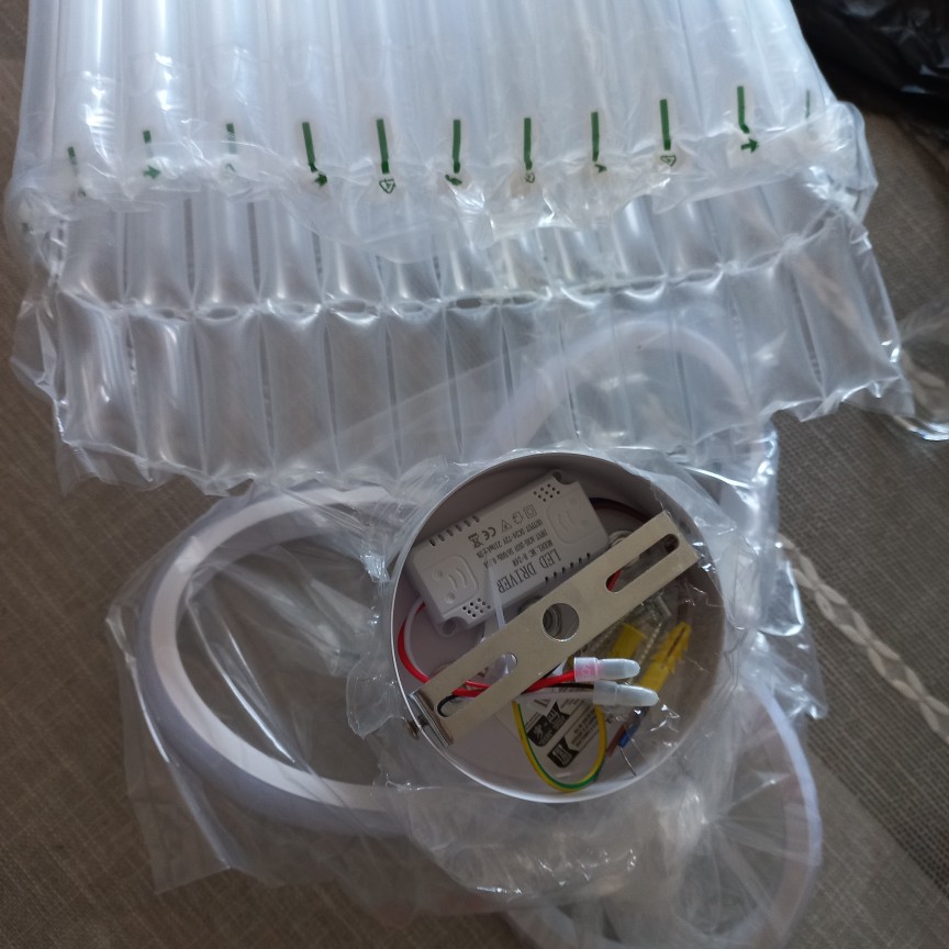 It arrived in 2 weeks, packed with bubble wrap and plastic. The lamp is quite beautiful and has the best cost-benefit ratio. I've already bought 6 for my new house, but haven't installed them yet.