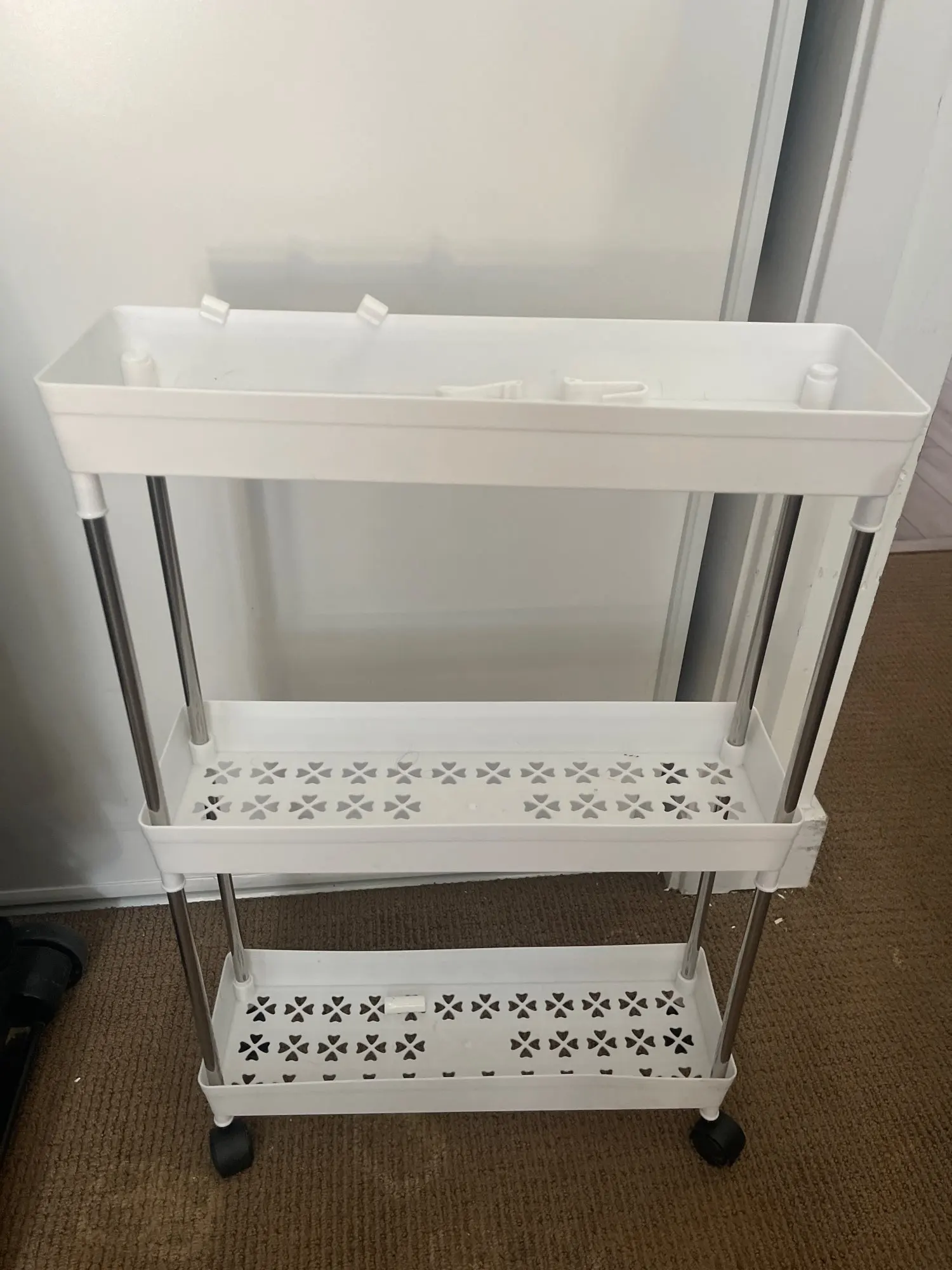 2.Easy Mobility: Featuring silent swivel wheels, this rolling utility cart can be effortlessly moved wherever you need it, ensuring convenience when rearranging storage locations around your home.