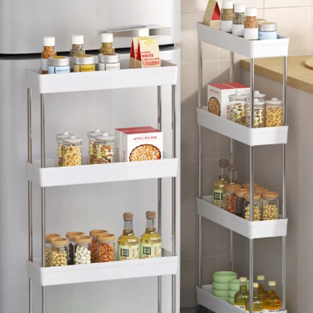 1.Space-Saving Design: Specially crafted for narrow spaces, like kitchens and bathrooms, our narrow storage rack maximizes storage without taking up floor area. Perfect for utilizing overlooked spaces beside desks or cabinets.