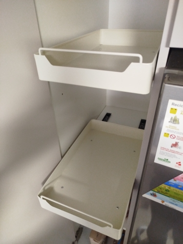 3. Strong load-bearing capacity: Our pull-out cabinet storage box is made of high-quality carbon steel and coated with silver powder. A sturdy structure will provide strong load-bearing capacity, making it easy to accommodate and organize loose items.