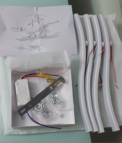 The order arrived quickly, the packaging is intact and undamaged, the chandelier seems not bad and shines well, but it won't illuminate a large area; during assembly, you can determine how to assemble it yourself. Let's see how long it will work.