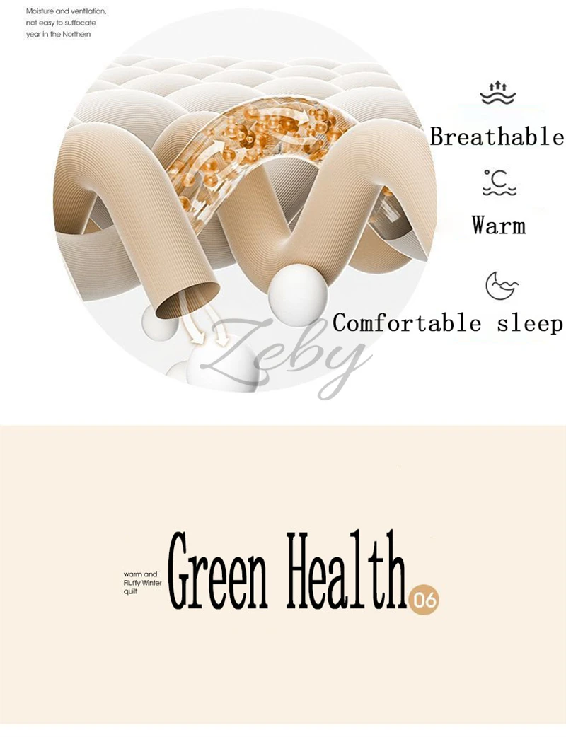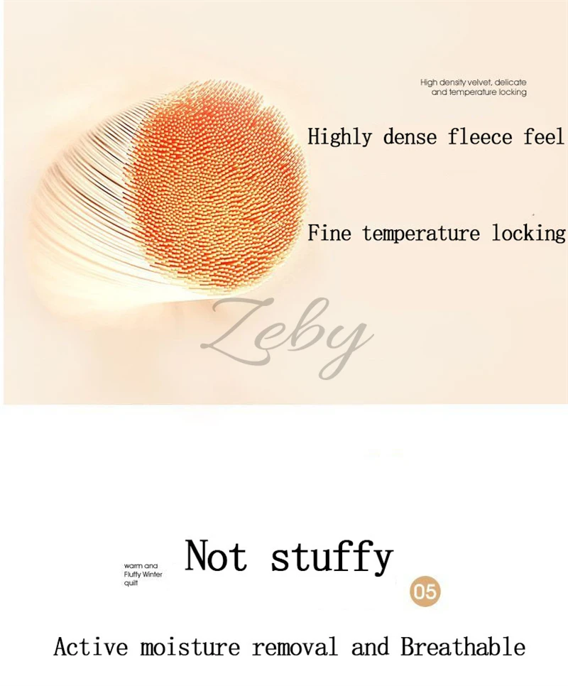 1. very soft . 2. very thick and warm. 3. cost-effective duvet. 4. no hair loss. 5. no deformation after washing. 6. no colour fading.