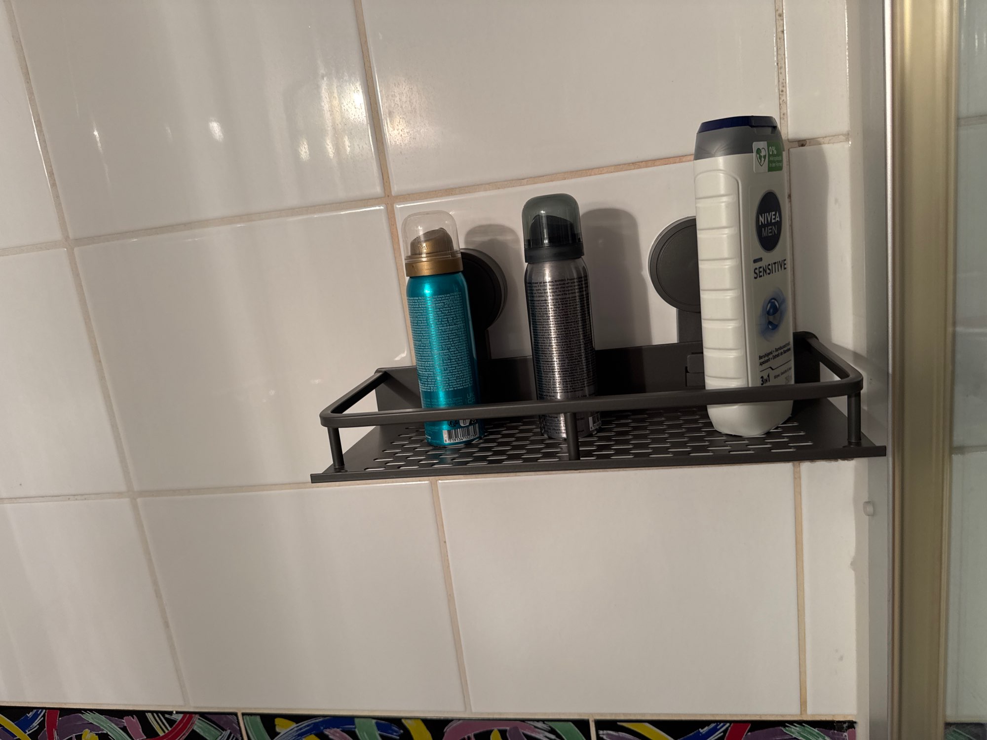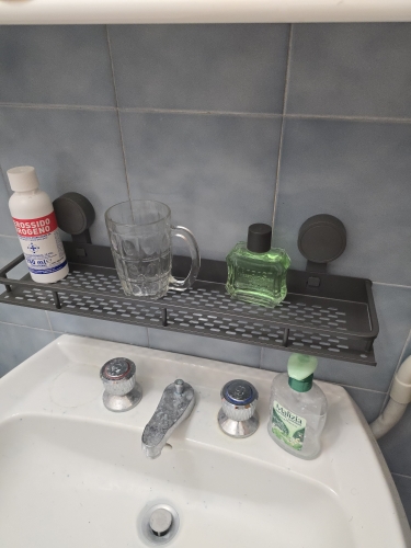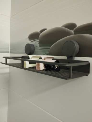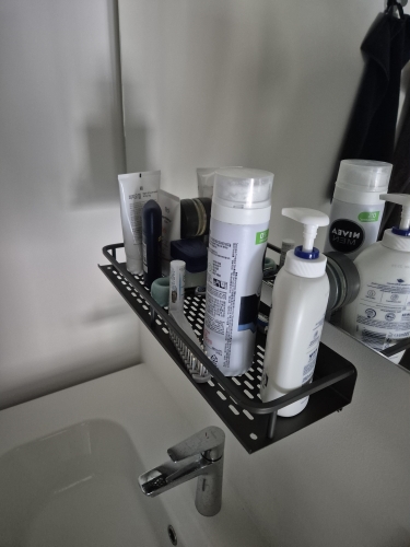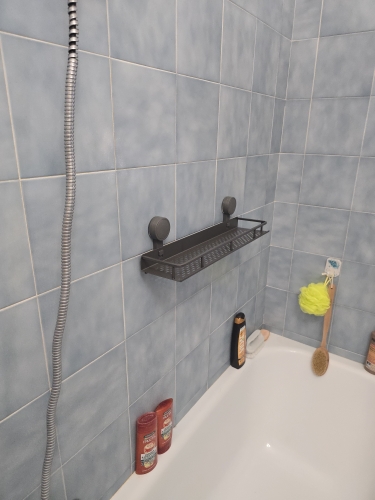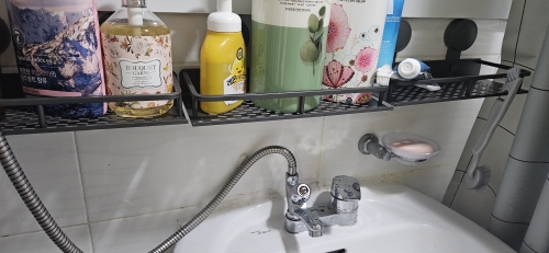 As I've lived in one house for a long time, I have accumulated many items, so I ordered a shelf with good reviews to hide them. The product arrived in just 3 days including the weekend, and by avoiding areas with tile crevices or gaps, wiping away moisture, and pressing firmly on the fixing part, it seems to stay almost without shaking. I mainly uploaded light items, but I think it can comfortably hold about 2 shampoos. I will use it for a long time and leave another review.