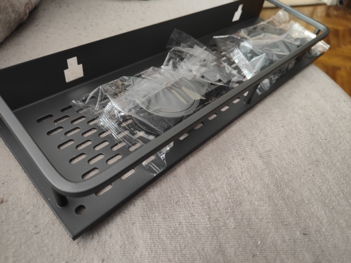 Excellent shelf, has been firmly holding for a week now. Fully fulfills its function. does not slip. It can withstand about 1.5 kg without distortion. Delivery in 10 days. The packaging is excellent in a sturdy cardboard box. I recommend it 100%.