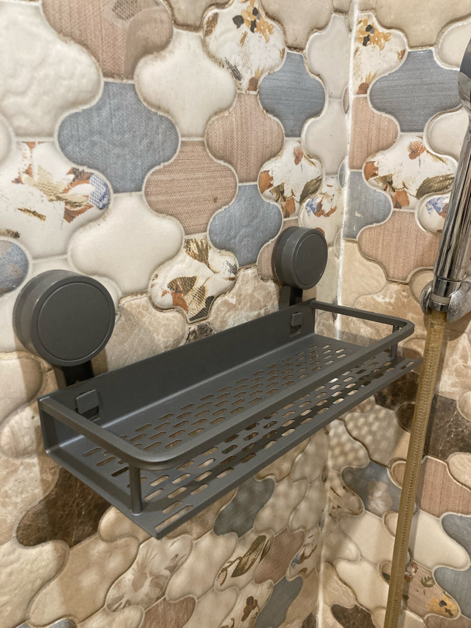 Excellent shelf. It's been hanging for two weeks now and doesn't seem to fall: the suction cups are of very high quality. Of course, over time it will rust like absolutely any other in this price range, but stainless steel costs 10 times more. In two weeks of using it, it still looks like new.