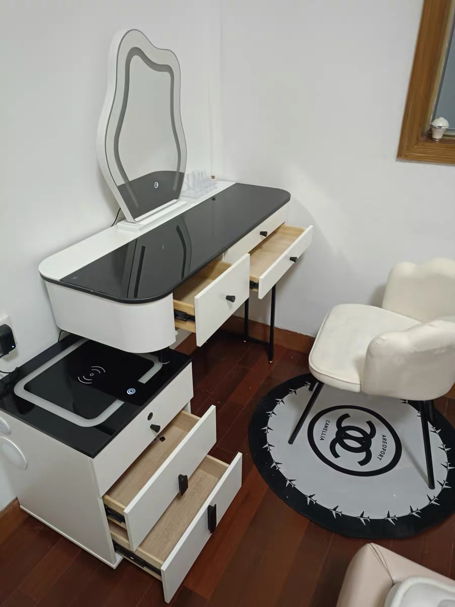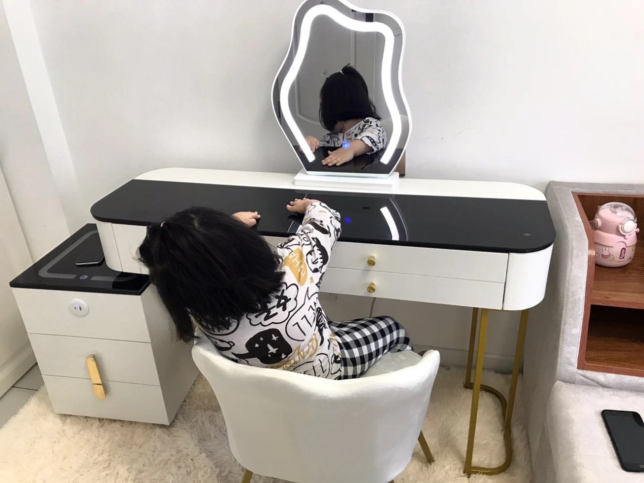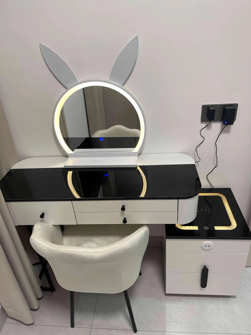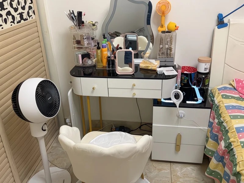 I absolutely love my new vanity! The color is beautiful and it fits perfectly in my space. It’s the right size with shelves, drawers, and a door for storage, plus it comes with jewelry boxes for added organization.