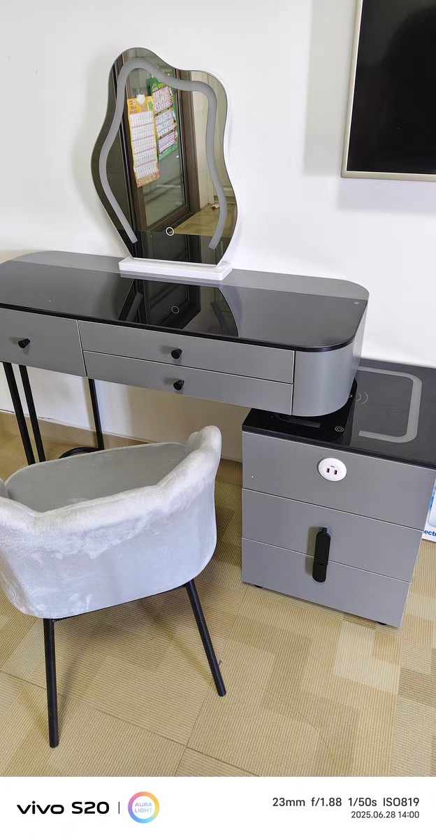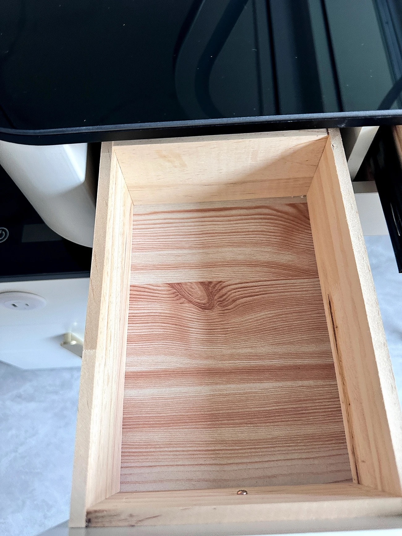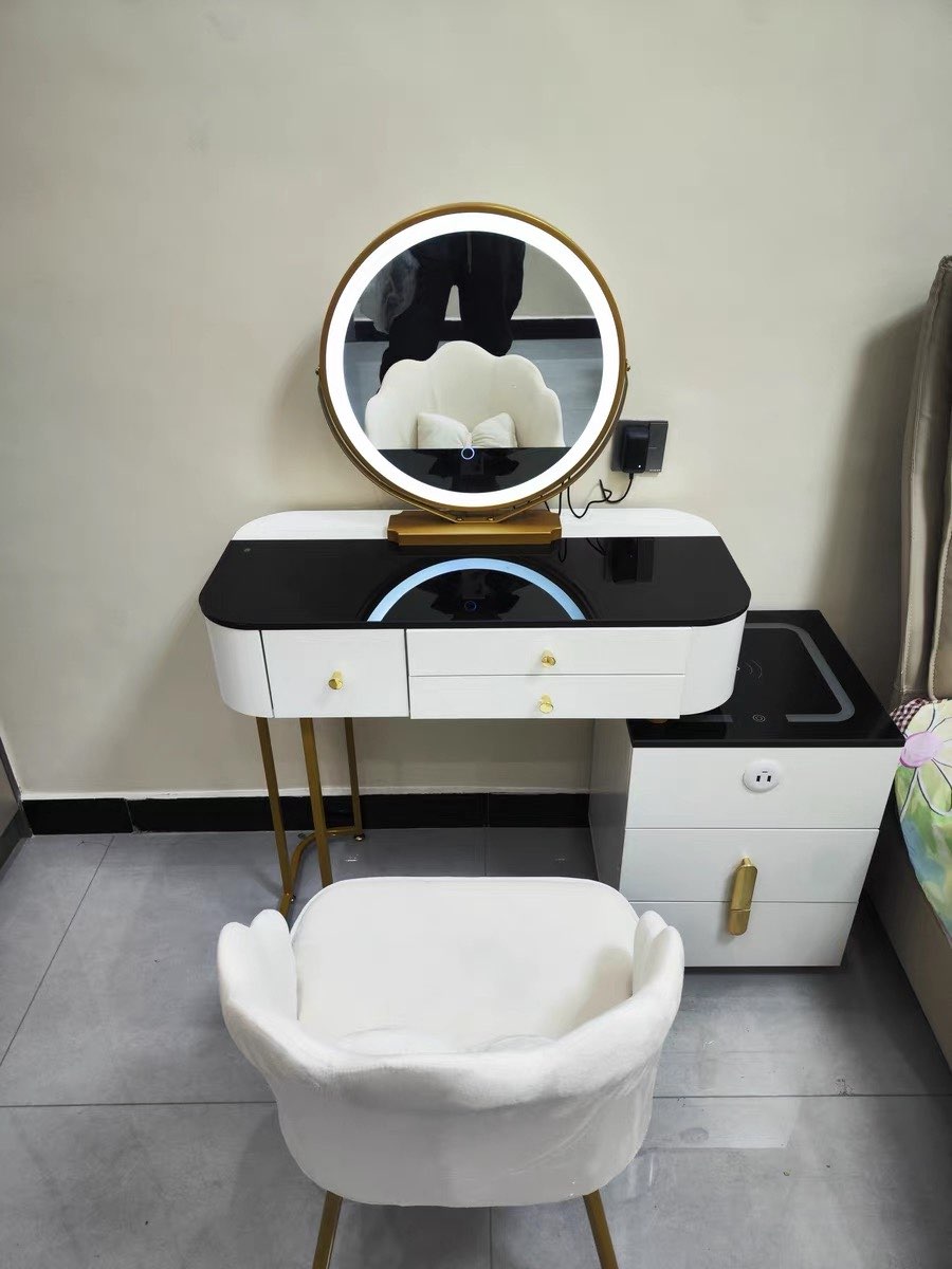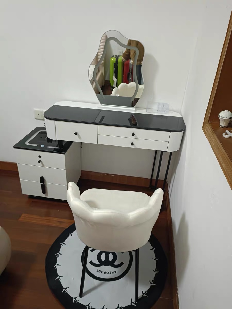 I absolutely love my new vanity! The color is beautiful and it fits perfectly in my space. It’s the right size with shelves, drawers, and a door for storage, plus it comes with jewelry boxes for added organization.