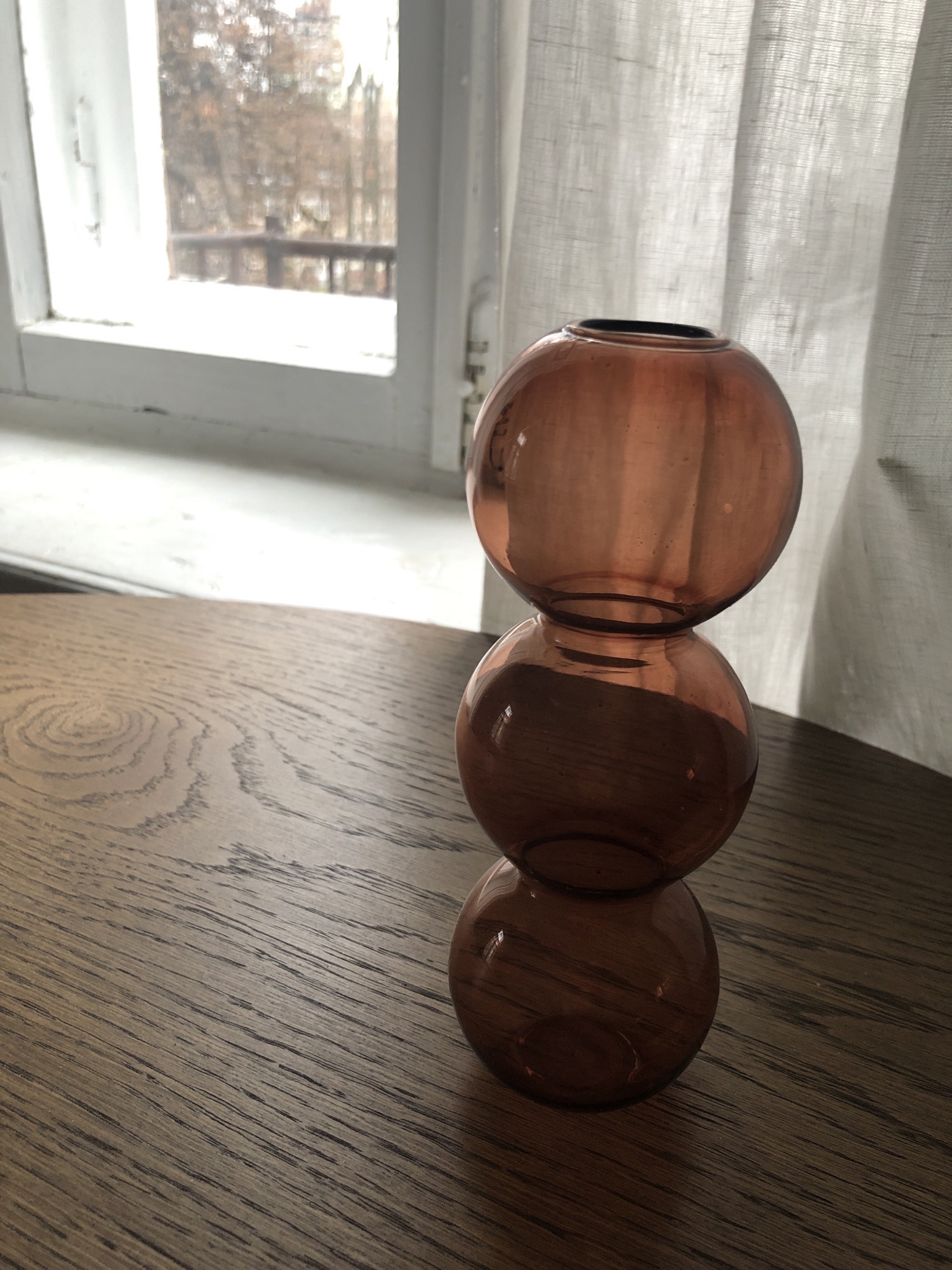 It looks pretty good. It’s a little smaller than i expected but it’s actually better for my space. The glass is a bit thin though, so the vase is quite lightweight and may only be suitable for shorter stemmed/smaller flowers if you plan to use it for florals.