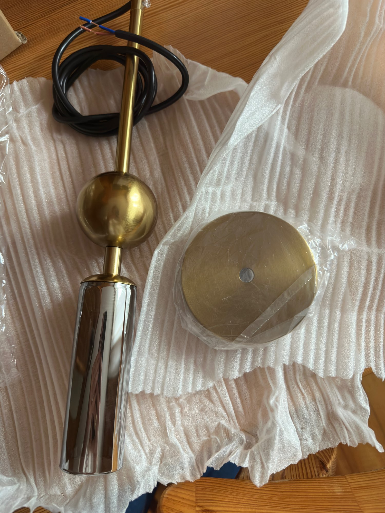 Everything is fine, just like in the picture. The set also includes an LED bulb :).