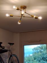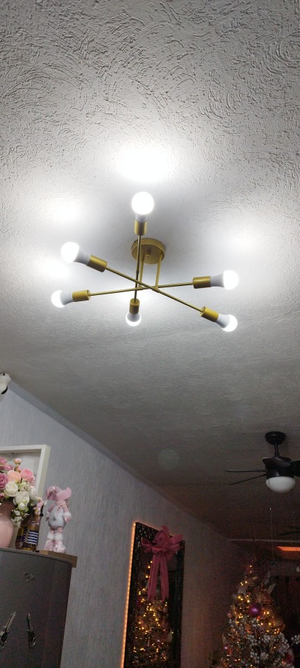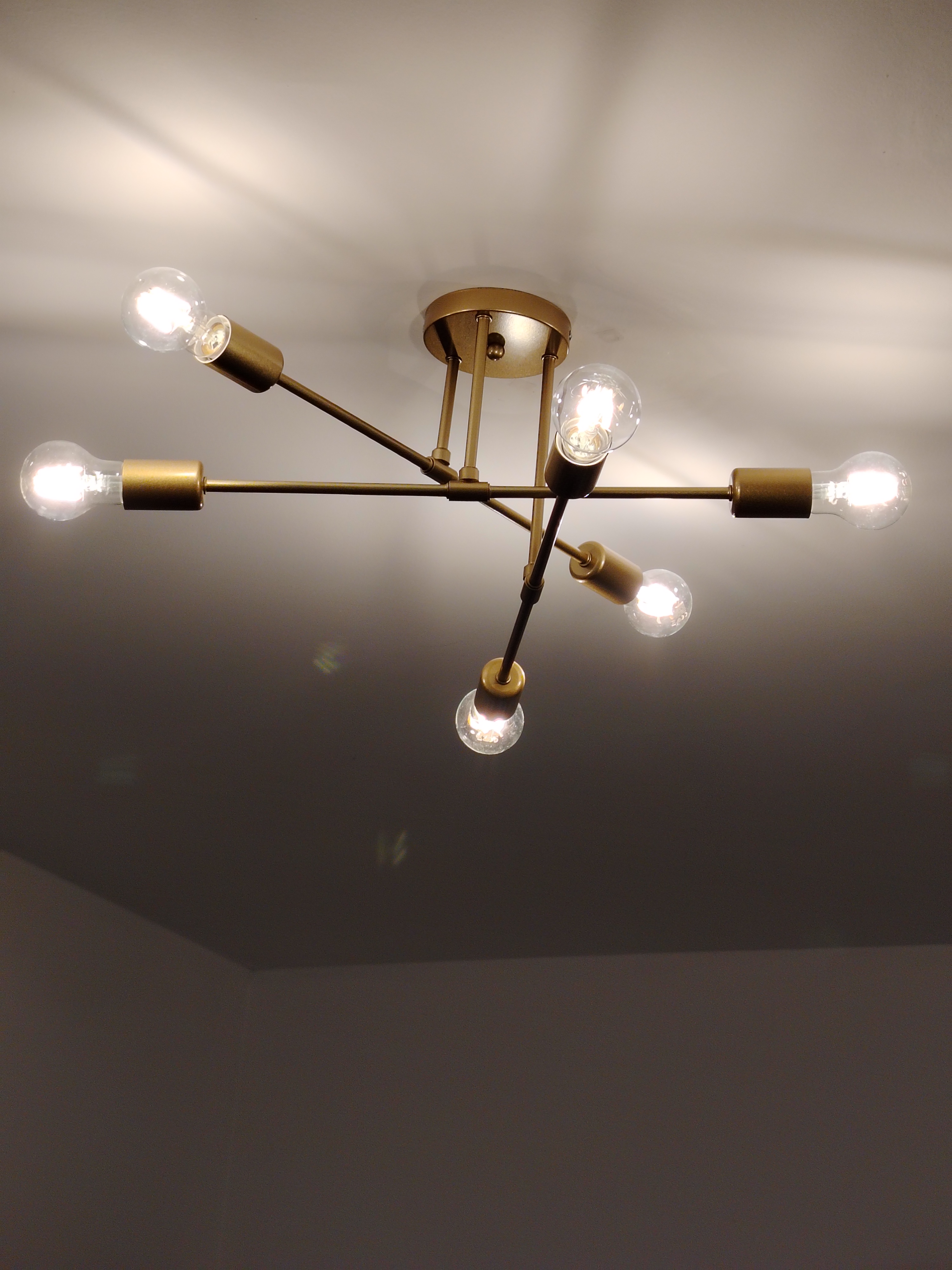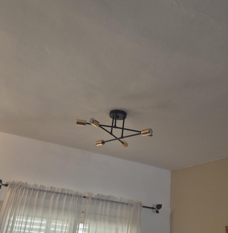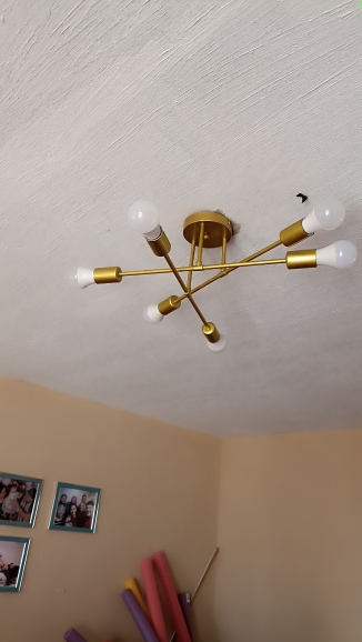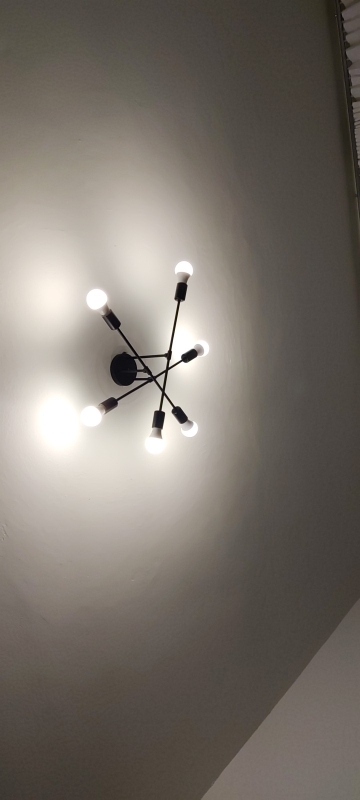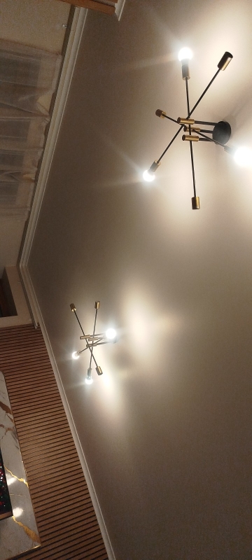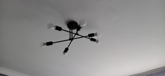 The lamp was delivered quite quickly. Assembling it was not difficult, following the instructions. My husband had some difficulties with the installation: it turned out that it wasn't necessary to hang it from a hook, but rather to drill two holes in the ceiling to secure it. But thanks to that, it fits well to the ceiling.