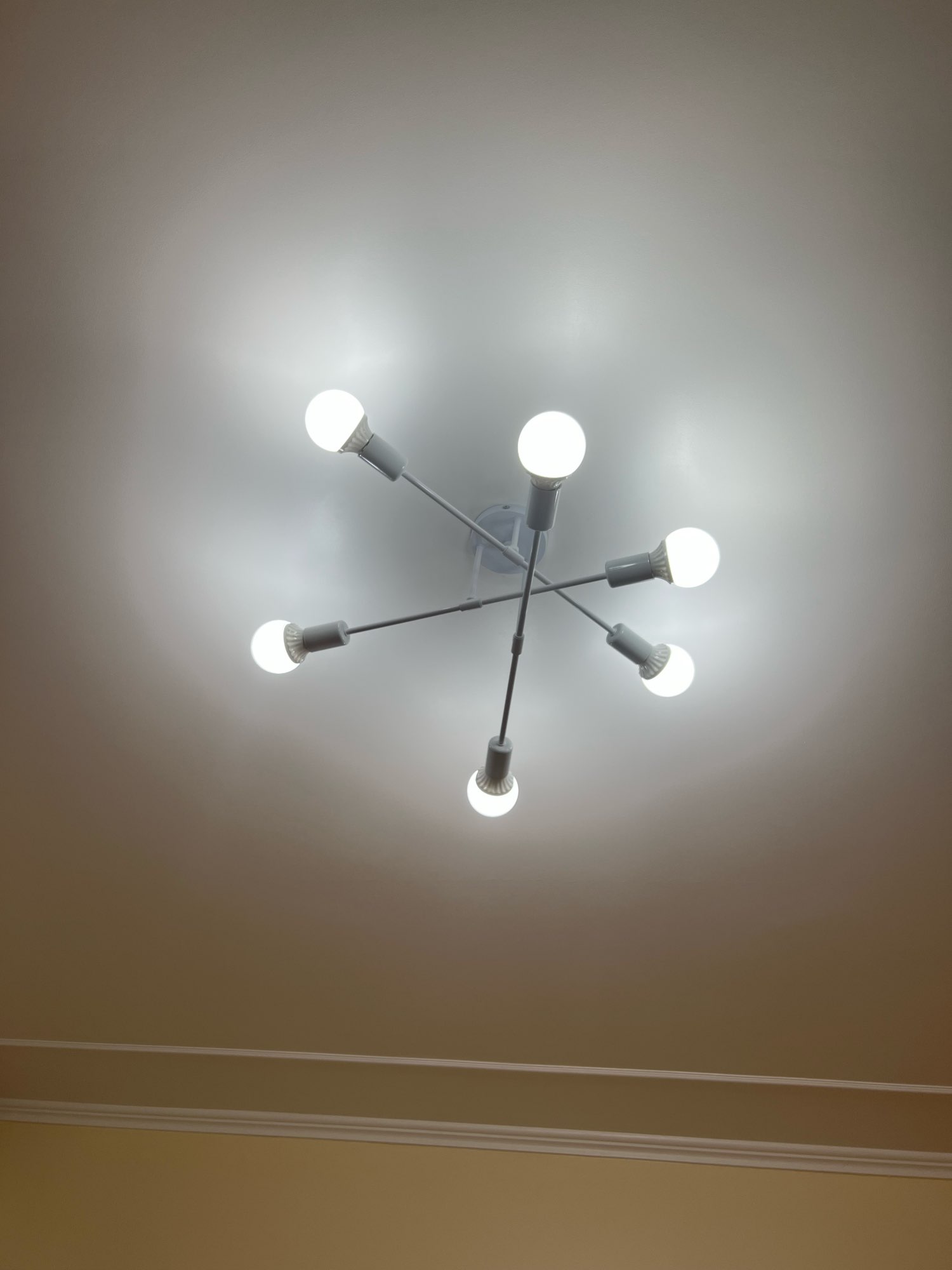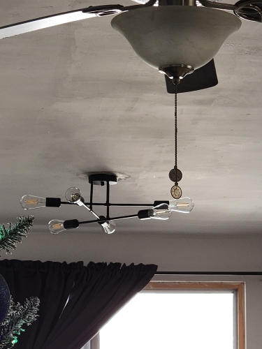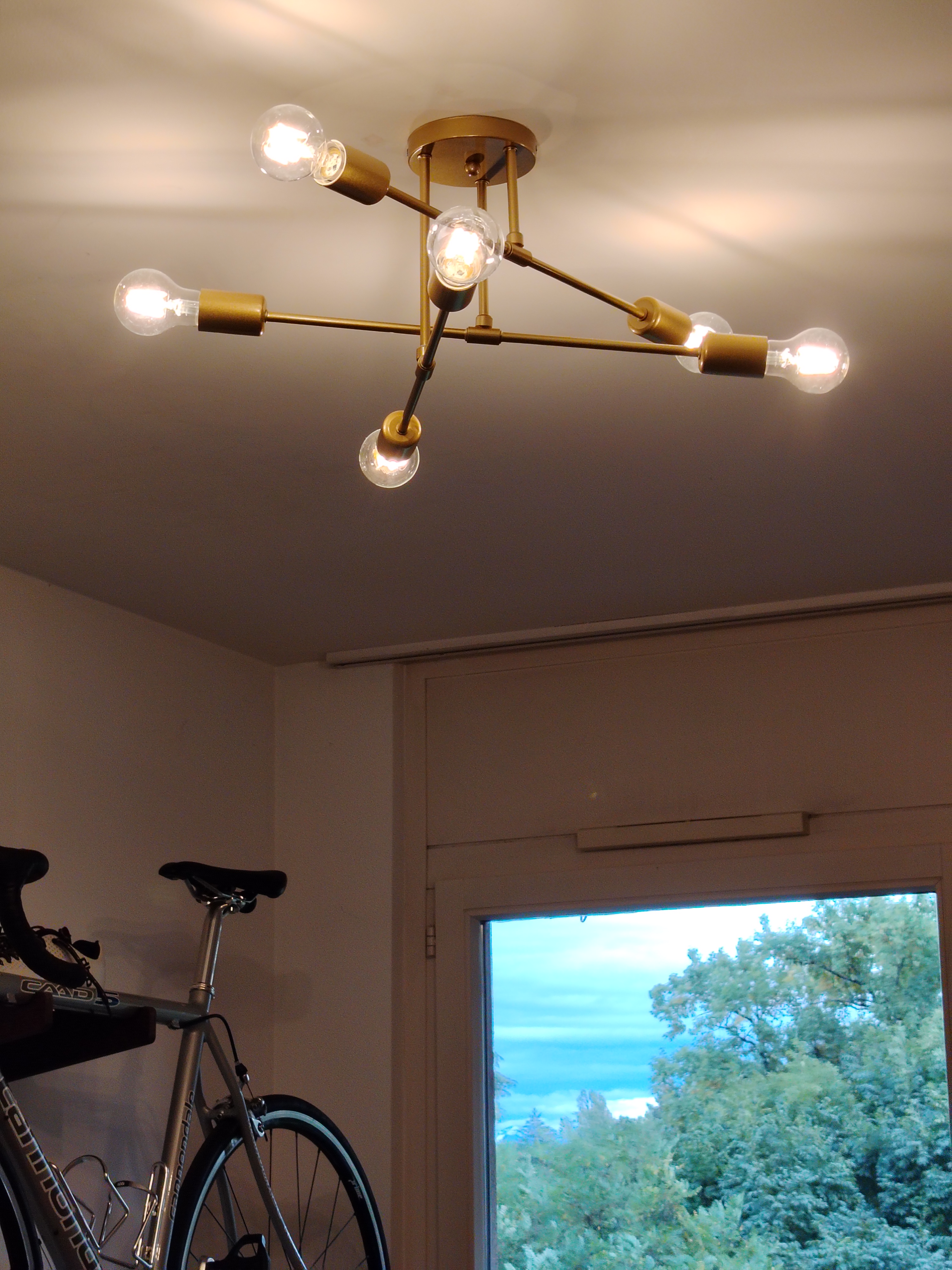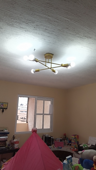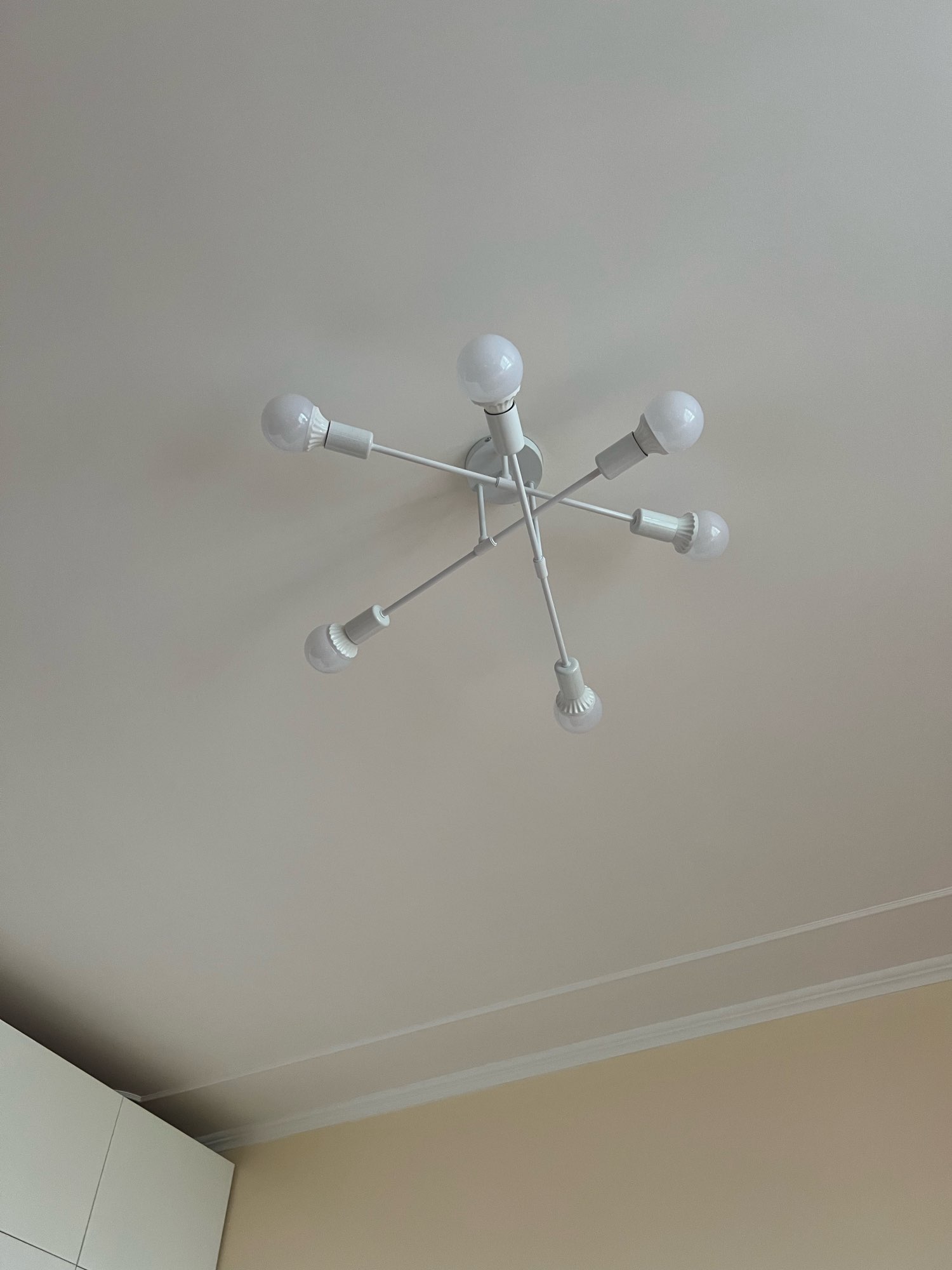 The lamp was delivered quite quickly. Assembling it was not difficult, following the instructions. My husband had some difficulties with the installation: it turned out that it wasn't necessary to hang it from a hook, but rather to drill two holes in the ceiling to secure it. But thanks to that, it fits well to the ceiling.