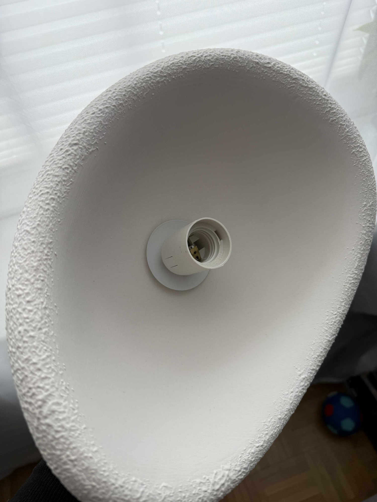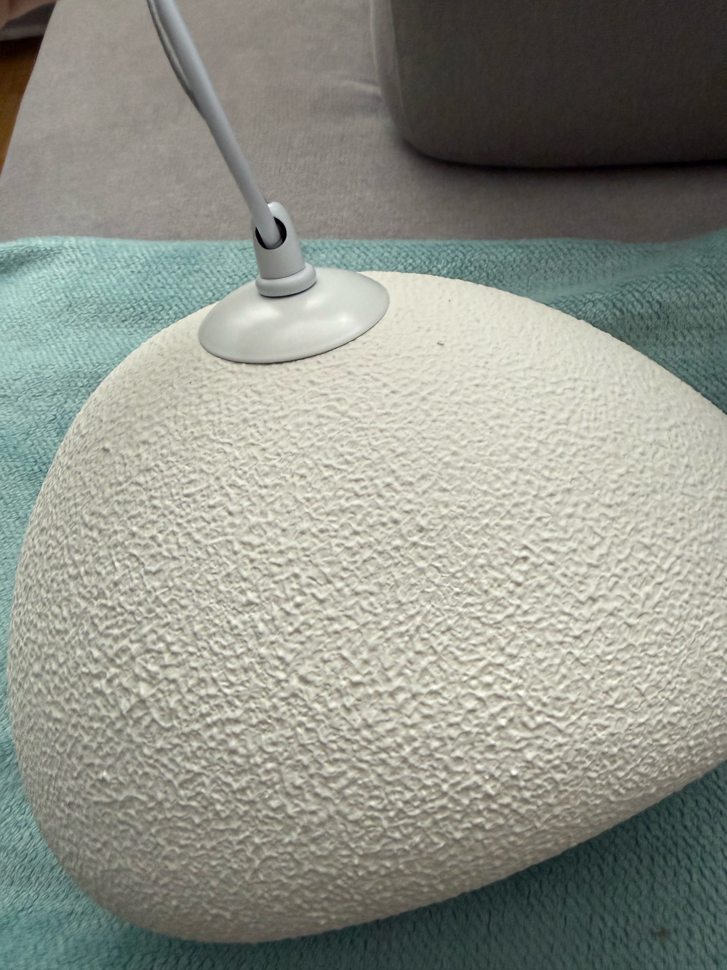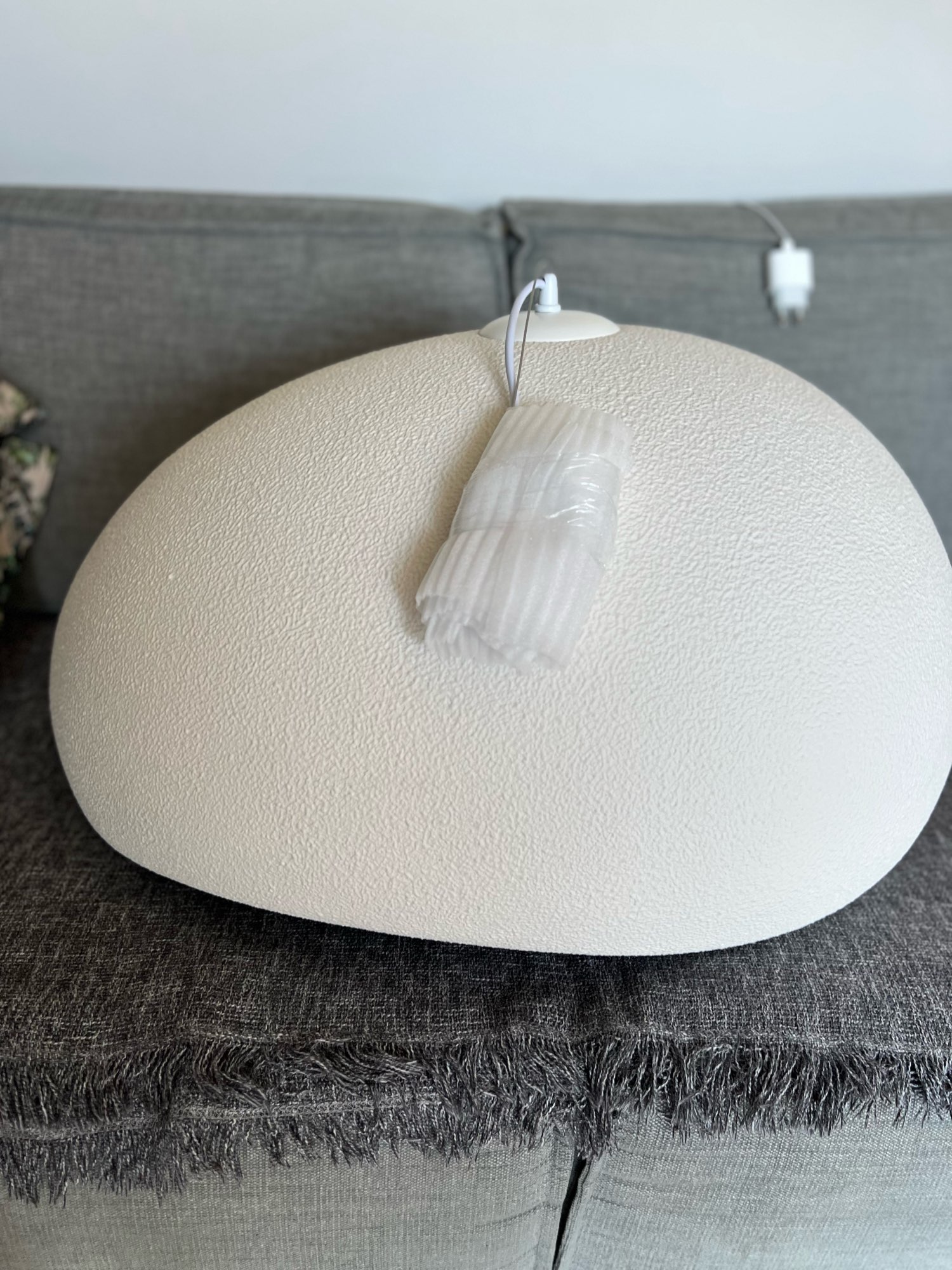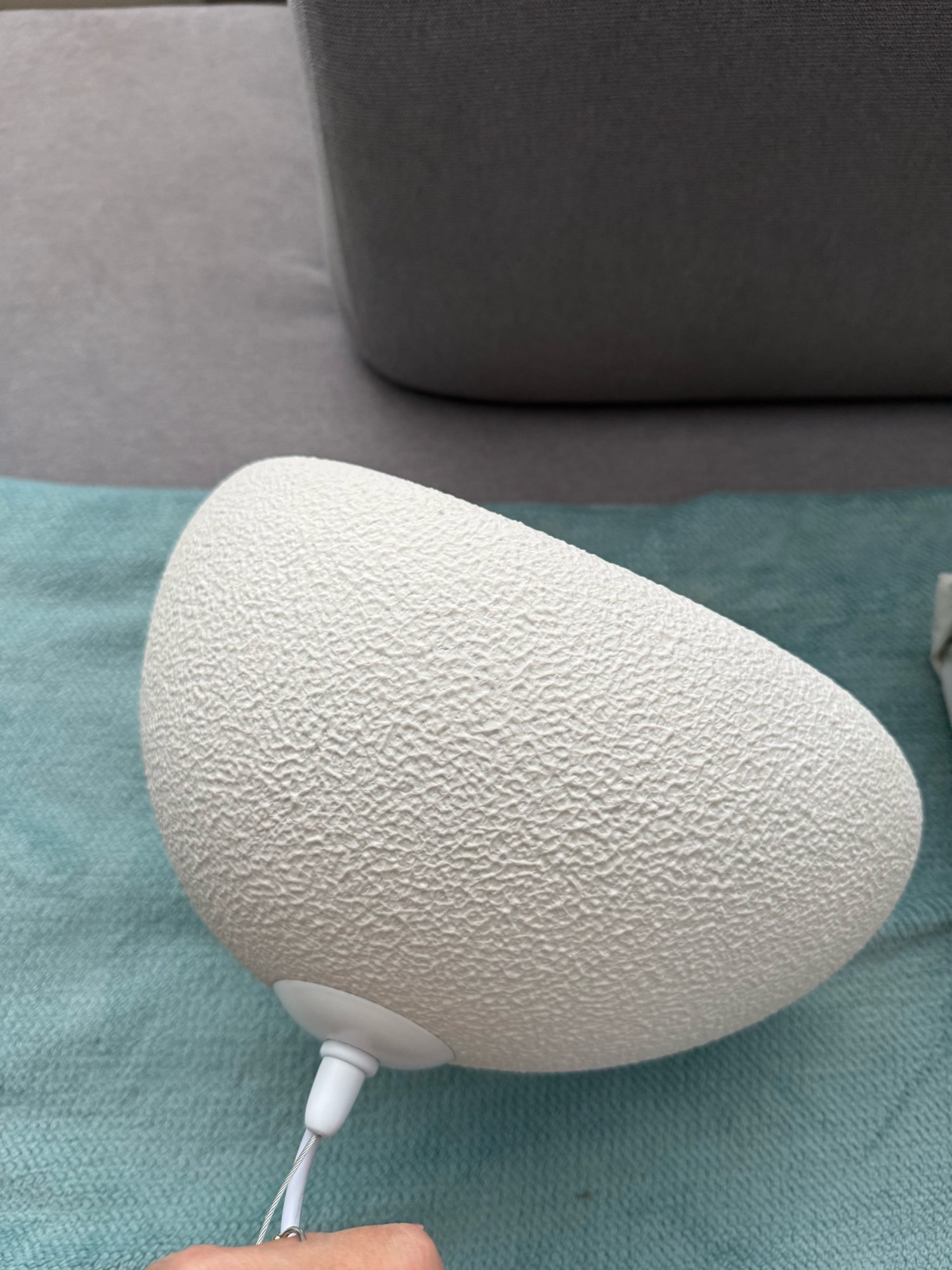 I was satisfied with these lamps. They arrived very quickly, they are definitely lightweight in polystyrene but well finished. The light has 3 colors and changes every time we turn it on from the switch. The color I chose, white, is a beige-tending white.