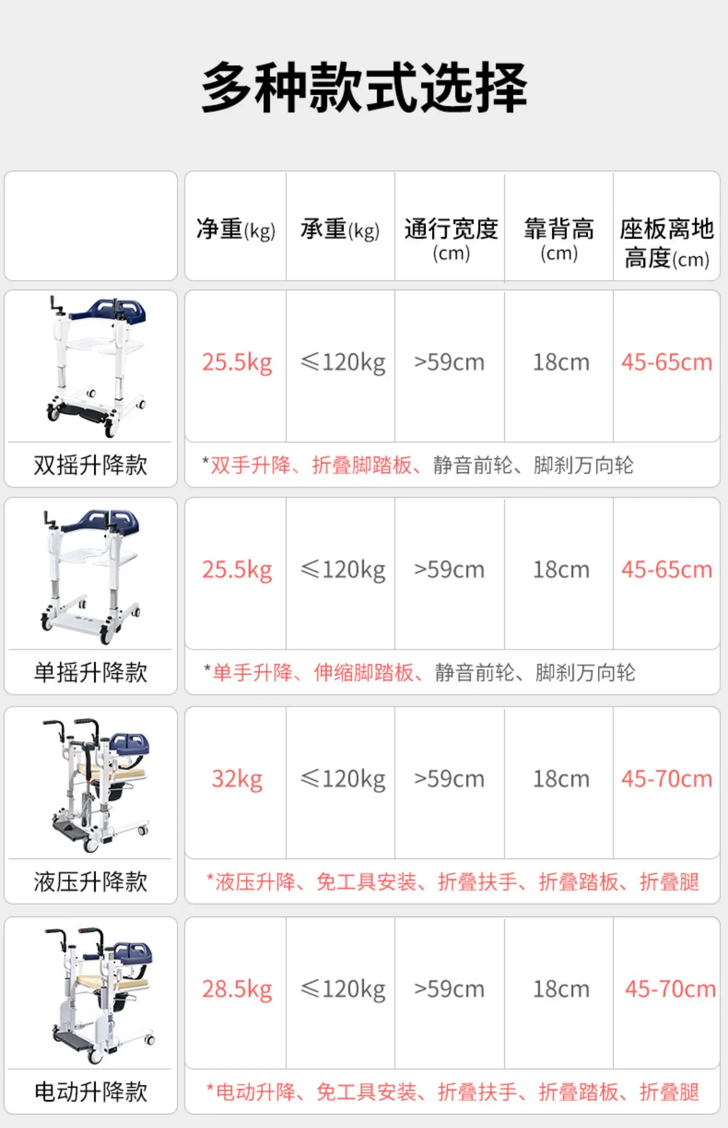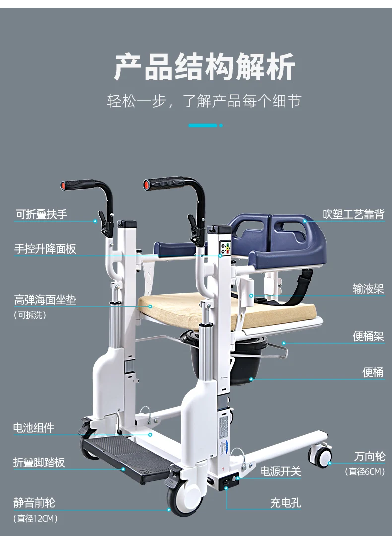 Paralytic elderly transfer machine multifunctional electric lifting transfer chair for disabled home care