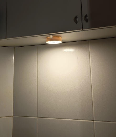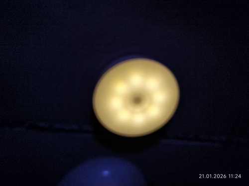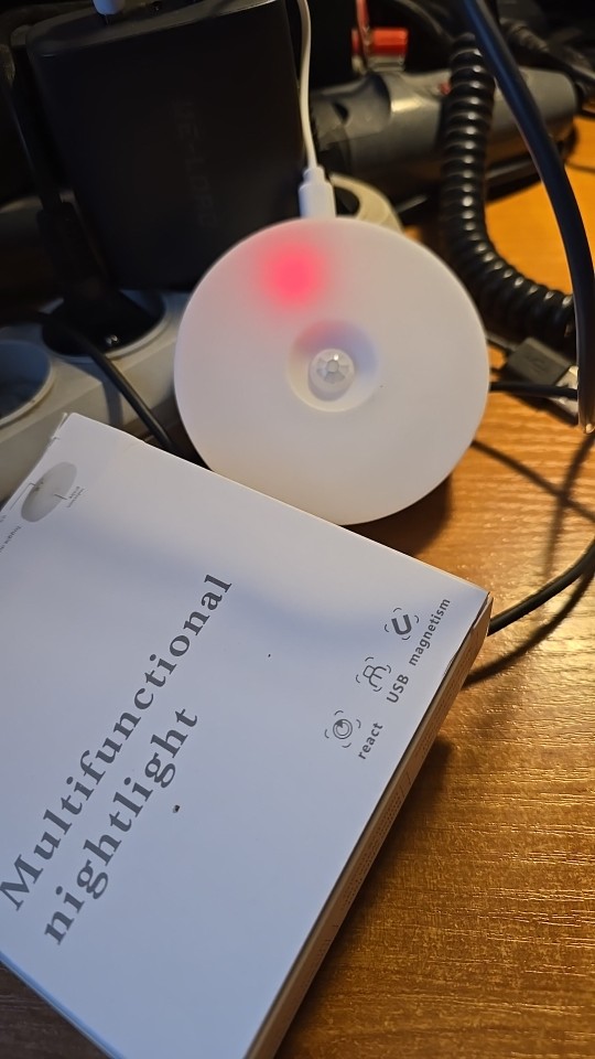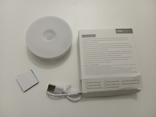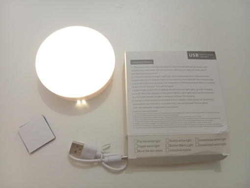 It's very good. It turns on in the dark when you approach and then turns off after a while. Comes with cable and magnetic sticker. It doesn't weigh anything, very comfortable.