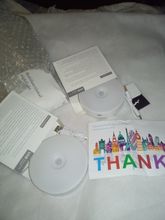 great for the bathroom, comes with a cable, but haven't used it yet. Packaged well, and a postcard was included.