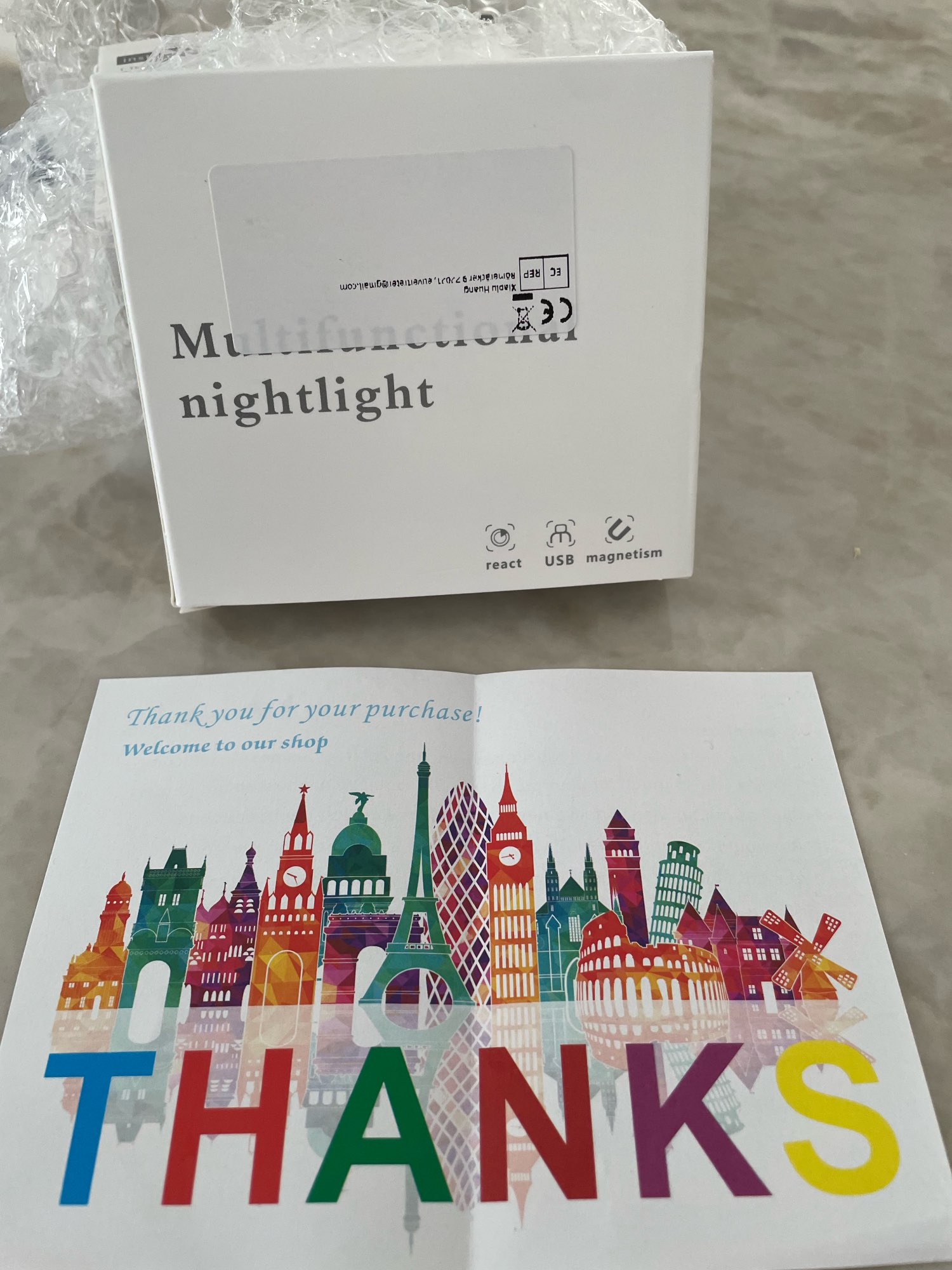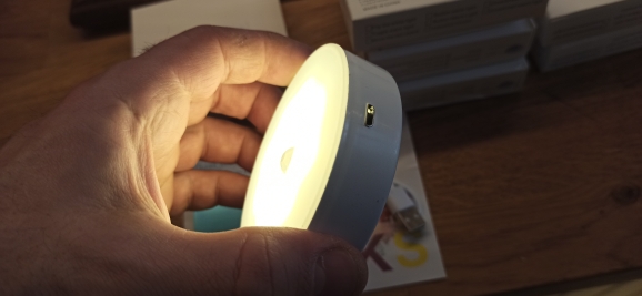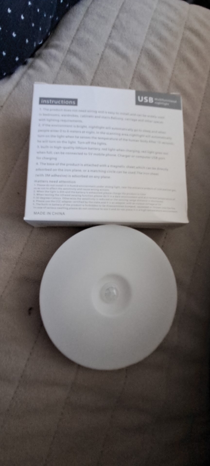 This LED night light sensor is mostly made of plastic with a sensor part inside that includes a lamp; it only turns on in the dark to light up. Not on a bright day. is charging USP. with USP cable small attached and 2 magnet parts for sticking attached. lights up well in the dark. turns itself off again. I am very satisfied with this. I ordered 2 of them. good to use. top 👍 😉 🇩 🇪