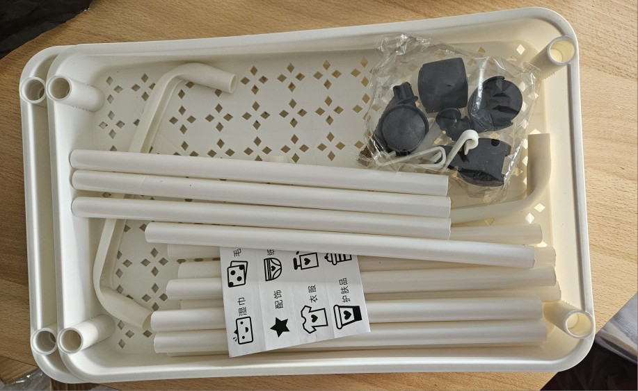 Nice rack. Fast delivery to Ukraine (10 days). Compilating all on site, collects very easily. Everything is fine, but there is a little plastic smell. I bought it for $0.01 thanks to the game, water the tree.