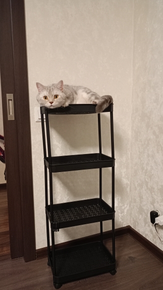 Nice shelf. Arrived intact. But not for heavy items. The cat weighs 5 kilograms, so it slightly sagged underneath.