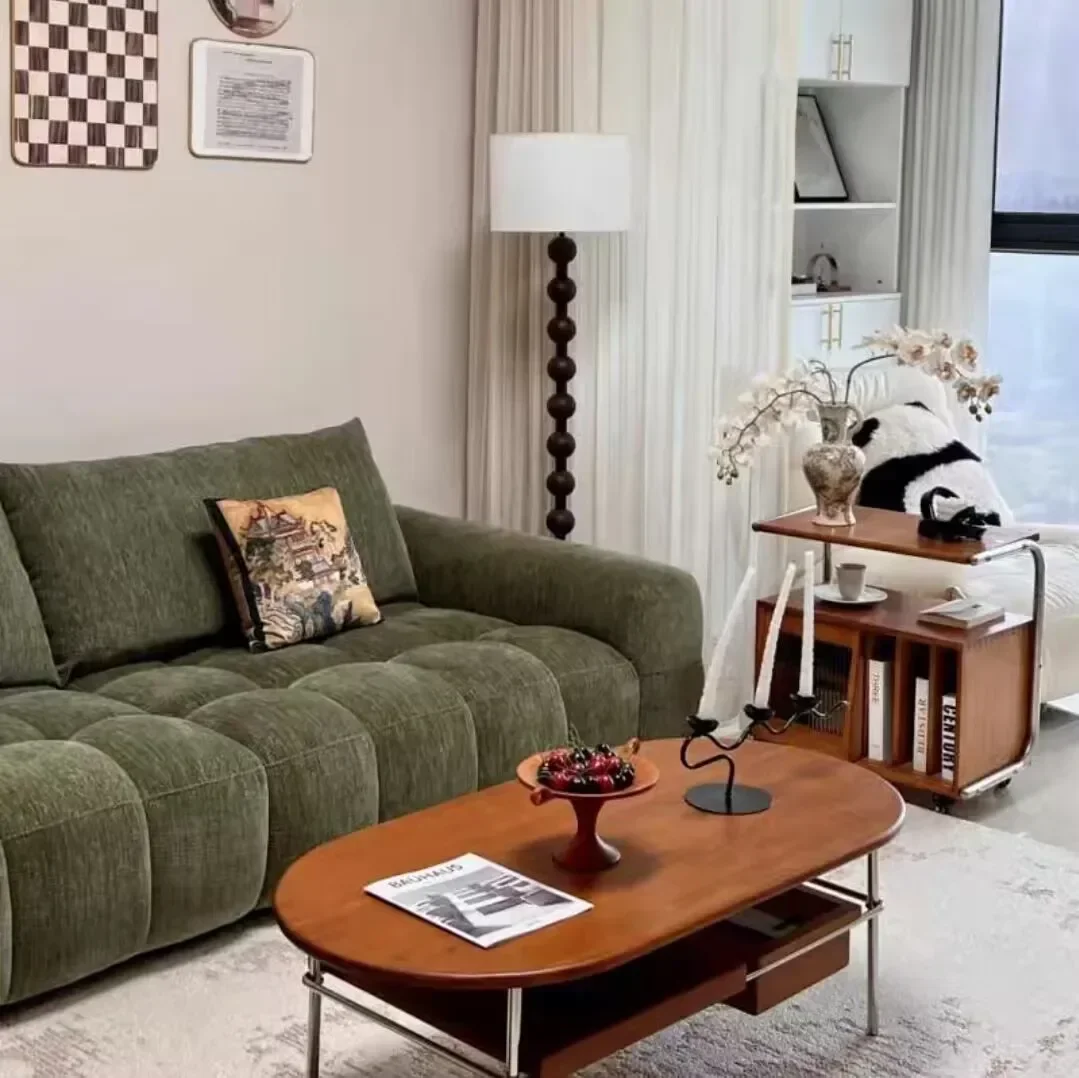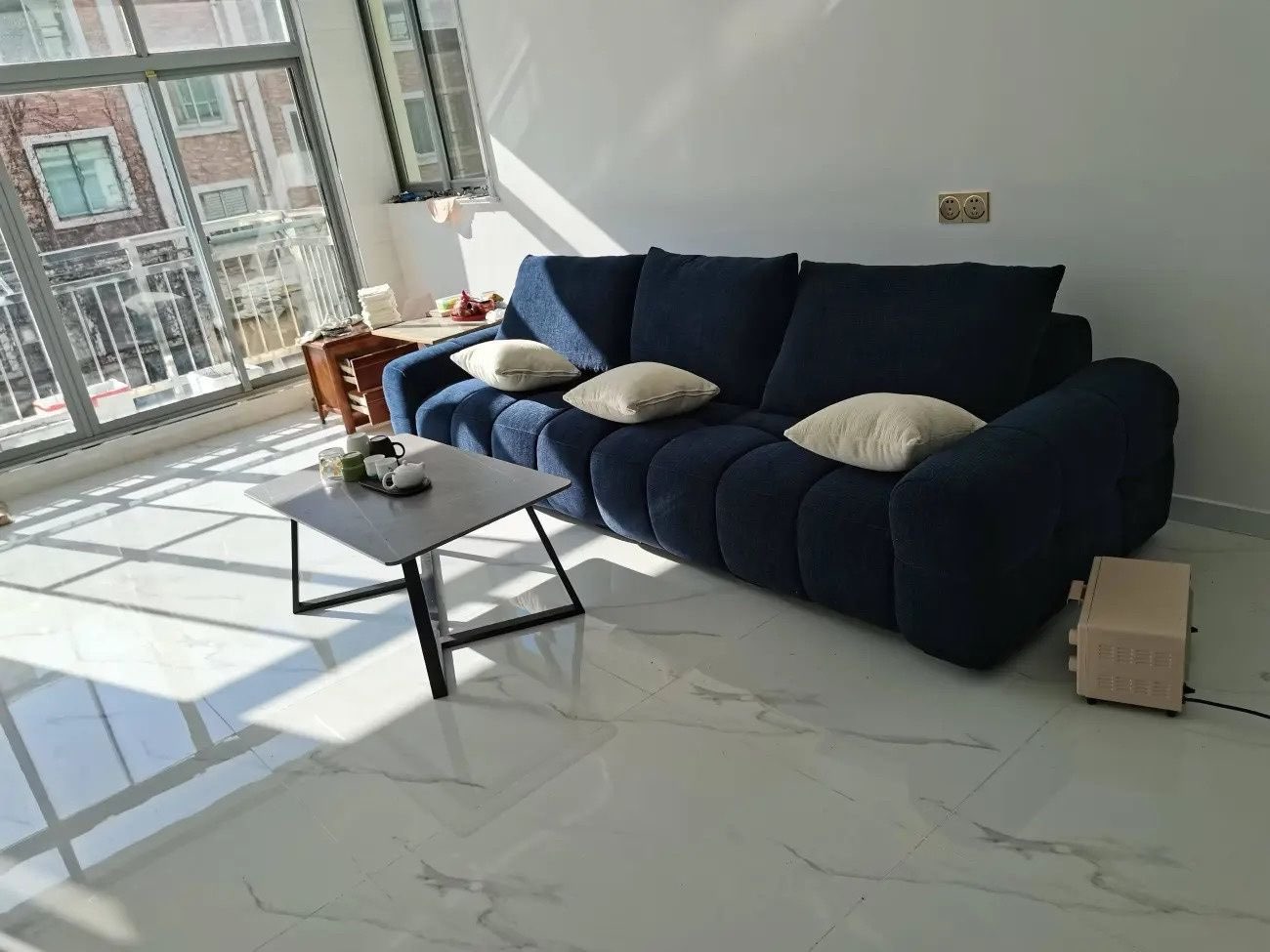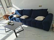 The sofa is very soft when sitting on it but doesn't sink in. It is still very comfortable and has no strong smell.
