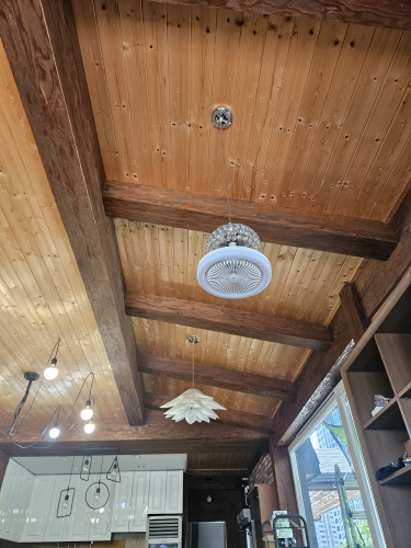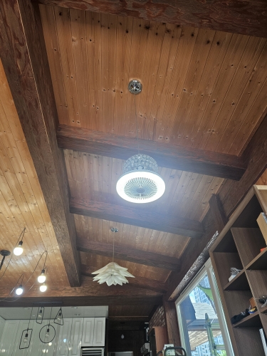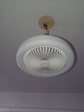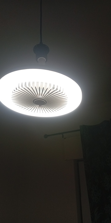 I hung it as an overhead fan in the office. It's quiet up to two levels and the lighting is also okay.