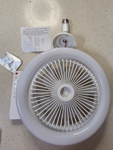 The box came completely smashed but the ceiling fan was not broken so it's very sturdy. Brightness and light color are adjustable and the control is very simple