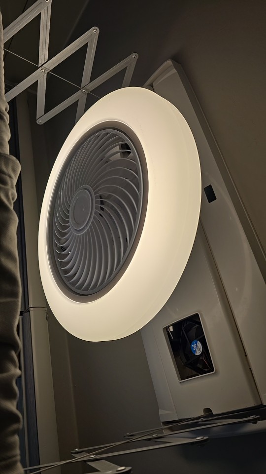 The design is pretty, so it has a good interior effect. When used with the air conditioner, the coolness is on a whole different level. It saves on electricity bills and makes it quiet enough to sleep comfortably at night. Vertical rise in quality of life! Highly recommended!