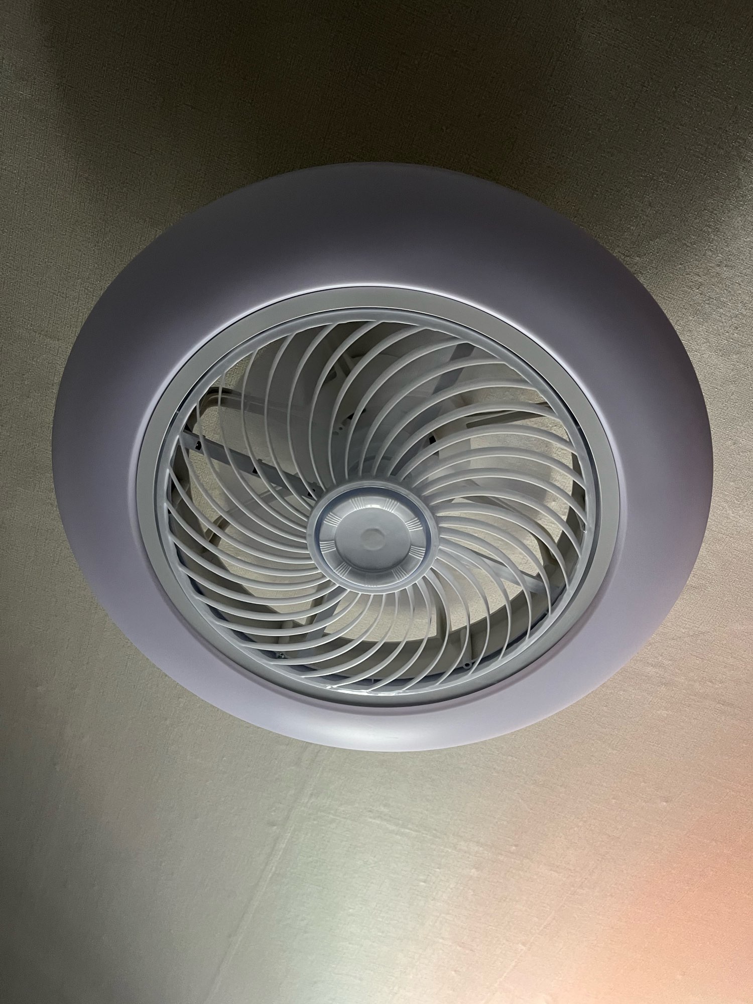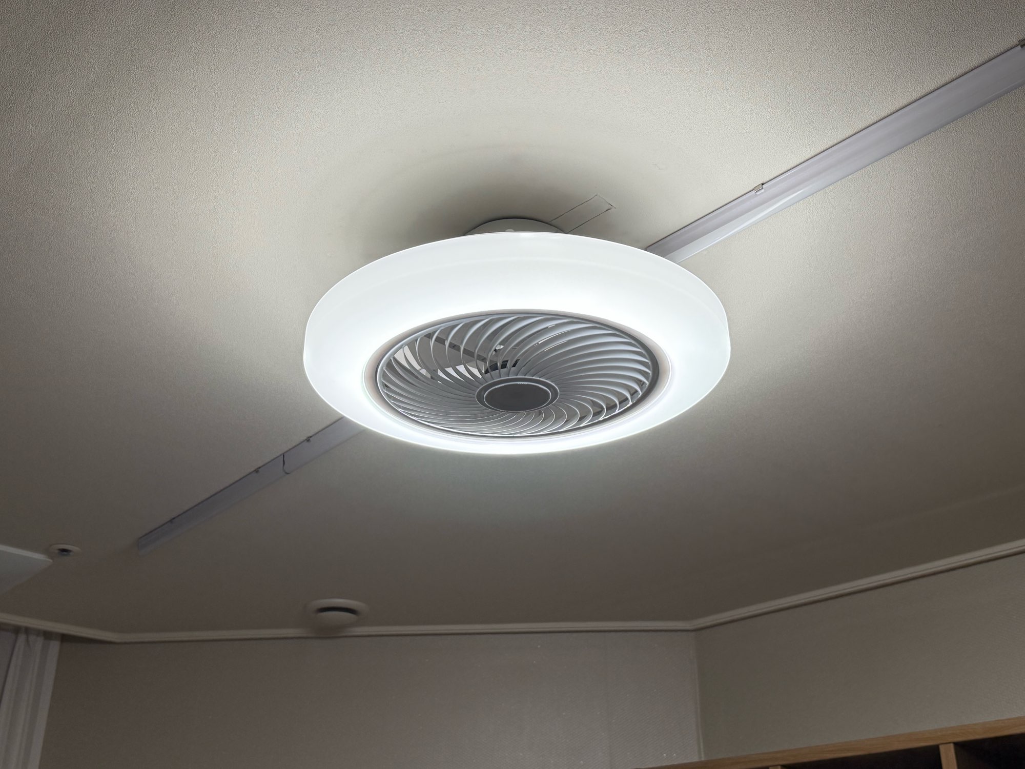 I recommend it. Recommended for the bedroom, small for the living room, and suitable for outside. The noise is low; if you don't pay attention, it's hard to hear. If you increase the speed to high, it sounds good. The night light is a bit bright, so I don't think I'll use it much. It fits well in both large and small rooms, and the lighting brightness is just right. Even if there is an additional fee, I would like to install it in the living room if I can choose the brightness.
